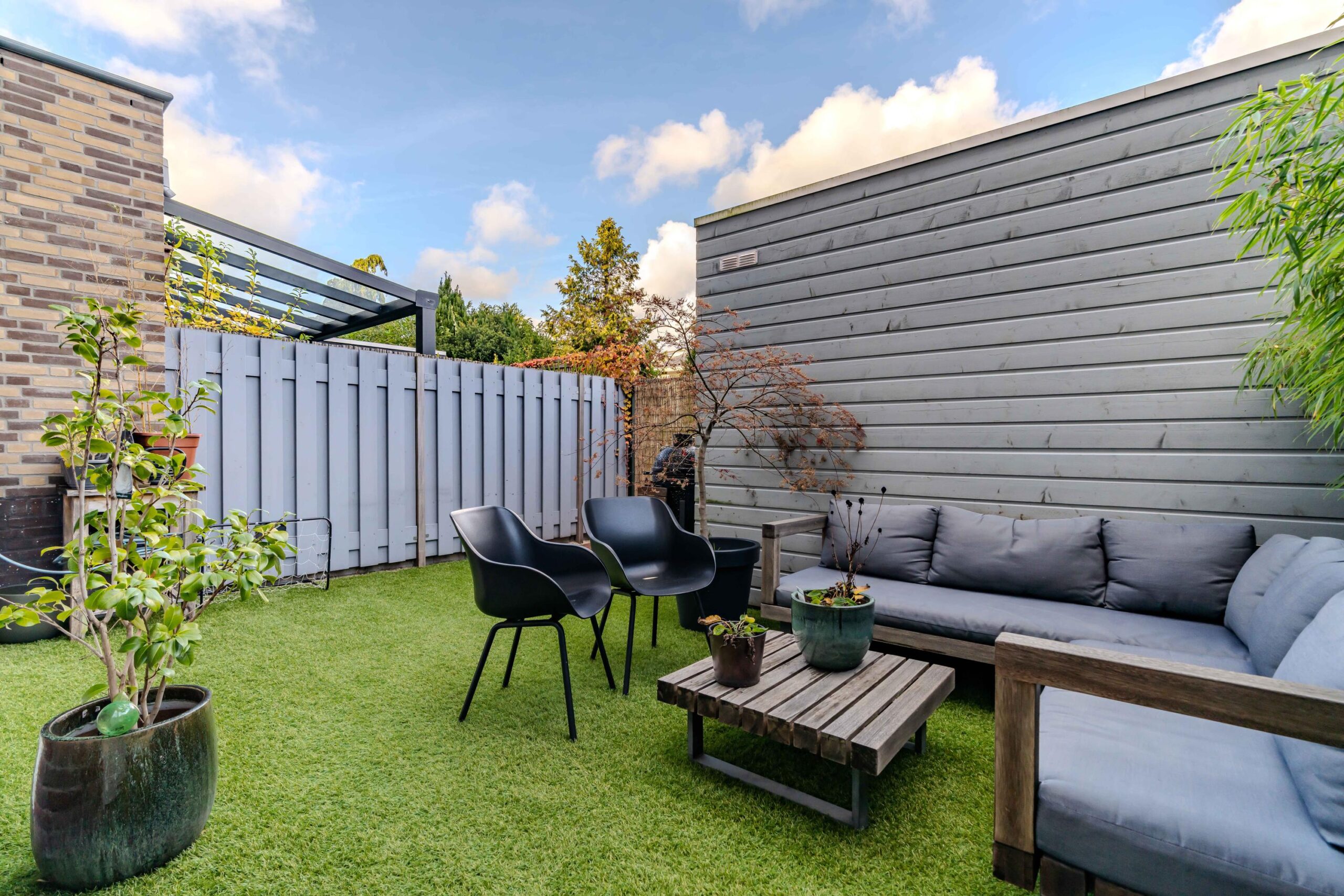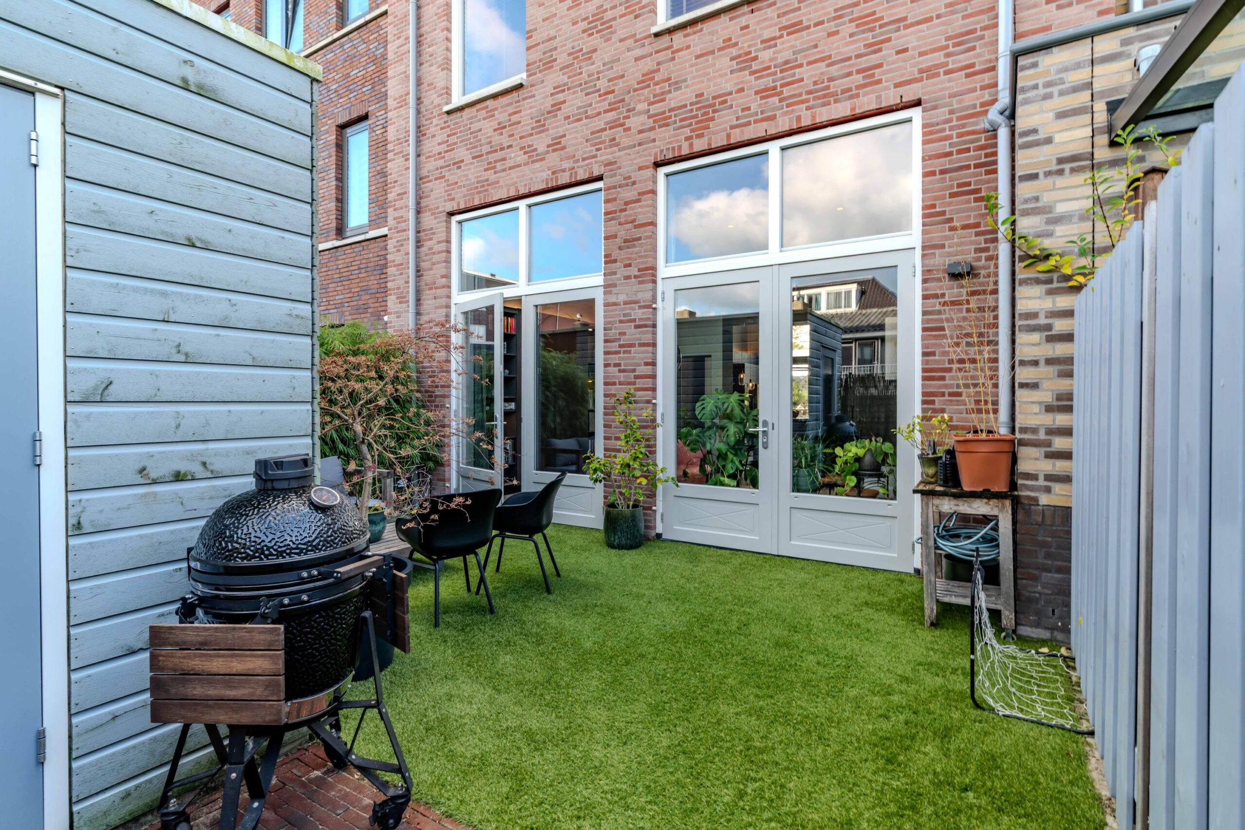 De woning beschikt over een voortuin met een prachtig uitzicht op het vaarwater – een heerlijke plek om in de middag- en avondzon te genieten van de omgeving. Aan de achterzijde ligt een knusse, onderhoudsvriendelijke achtertuin waar je in de ochtendzon rustig kunt ontbijten of ontspannen kunt zitten. De tuin is voorzien van een aparte berging en een achterom, wat het geheel extra praktisch maakt.