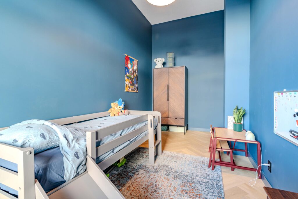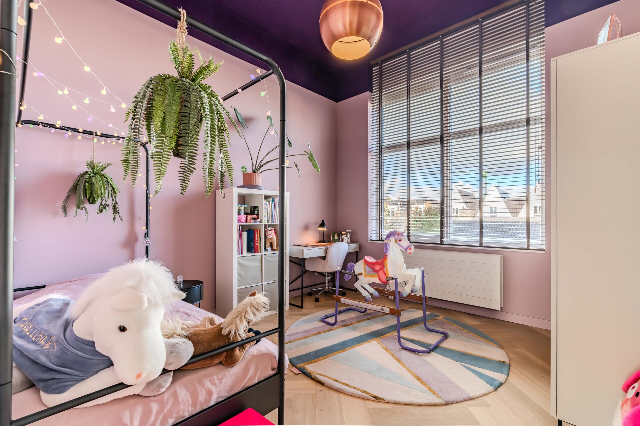 De bovenverdiepingen bieden volop ruimte met vijf ruime slaapkamers, twee badkamers en een aparte wasruimte – ideaal voor een groot gezin of voor wie graag een extra werk- of hobbykamer wil. Overal in huis komen de hoge plafonds en grote ramen terug, wat zorgt voor een heerlijk gevoel van licht en ruimte.