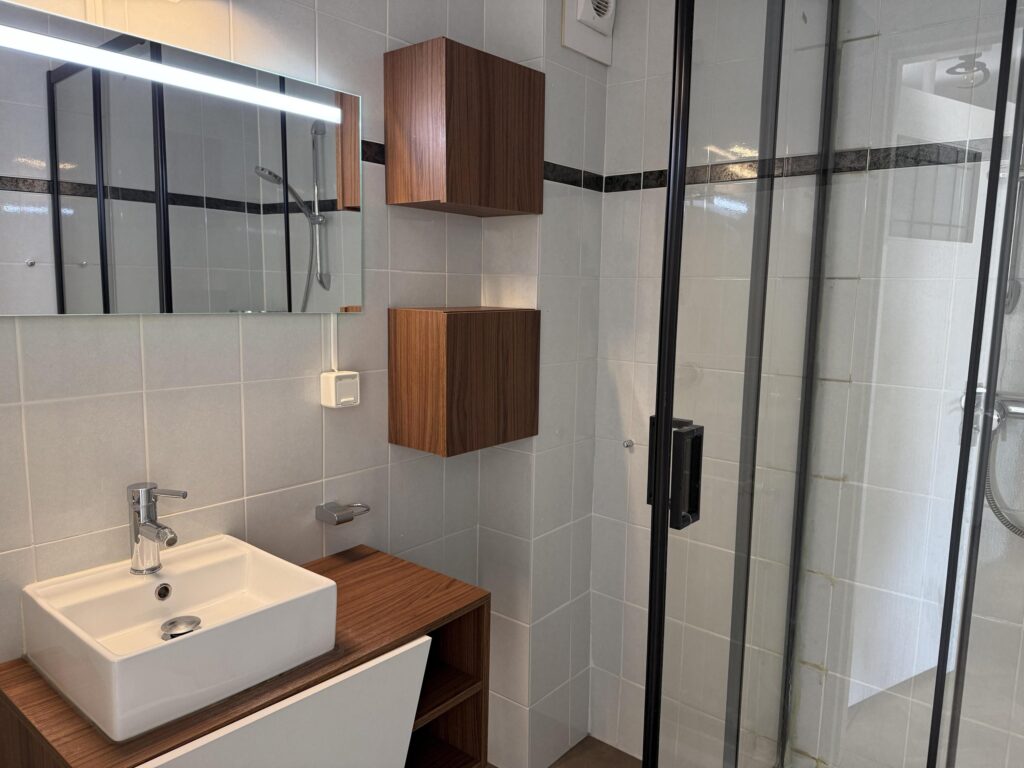Spacious bedroom at the front with a wardrobe. Master bedroom at the back with access to the balcony. Modern bathroom with shower and sink unit. Modern toilet with a washbasin.