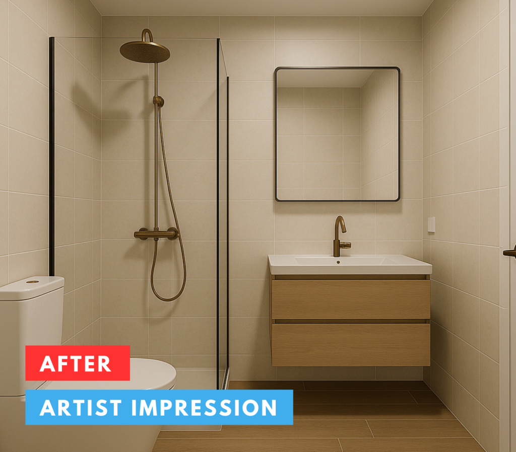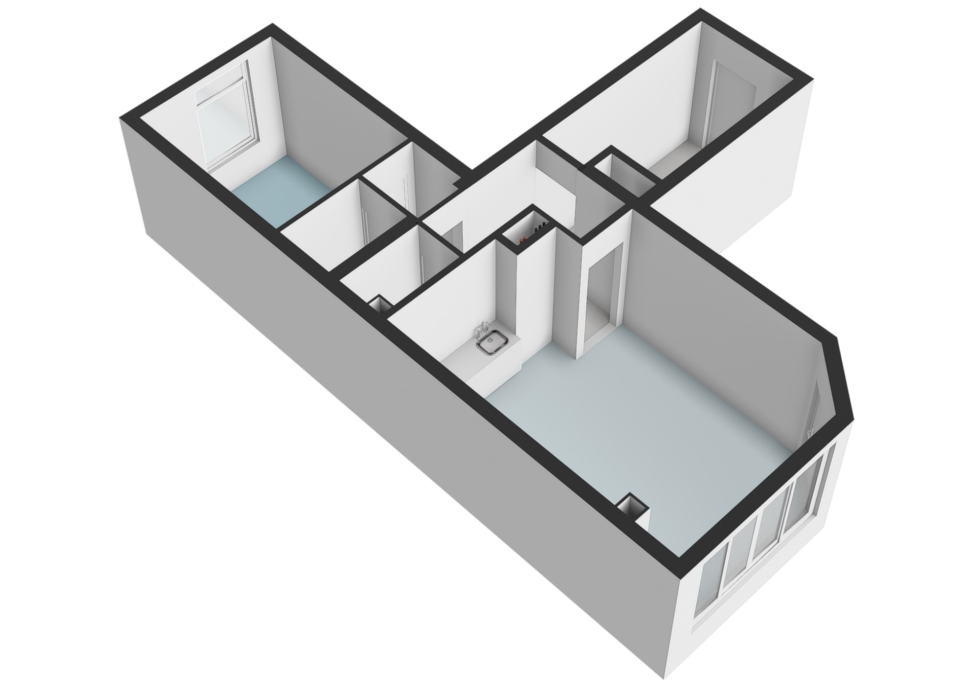 If you would like to create a larger bathroom, this is possible by removing 1m from the bedroom and including it in the bathroom, see the impression picture. There is a separate room for the washing machine and dryer.