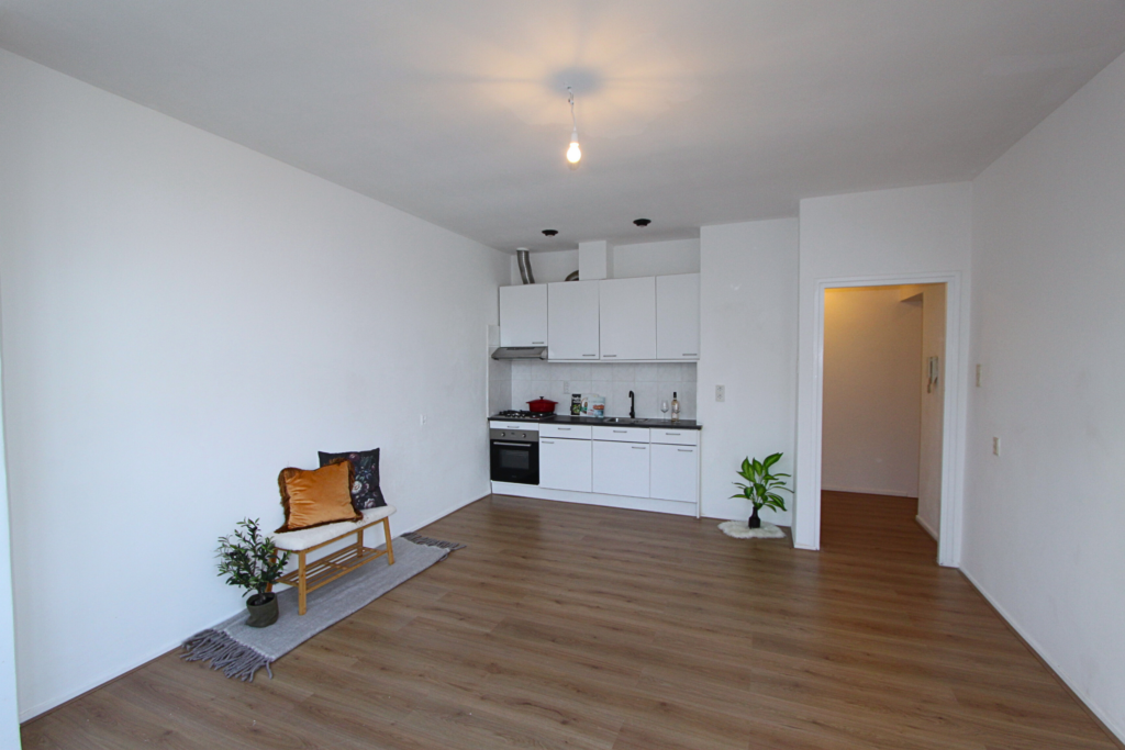 Access via a central entrance with mailboxes and doorbells, hall with staircase to the first floor, entrance to the apartment at the end of the hallway, spacious hall (suitable for extra storage space), living room with an open kitchen with new gas hob, combi oven and extractor hood. Bathroom with shower and toilet and passage to the bedroom with sink.