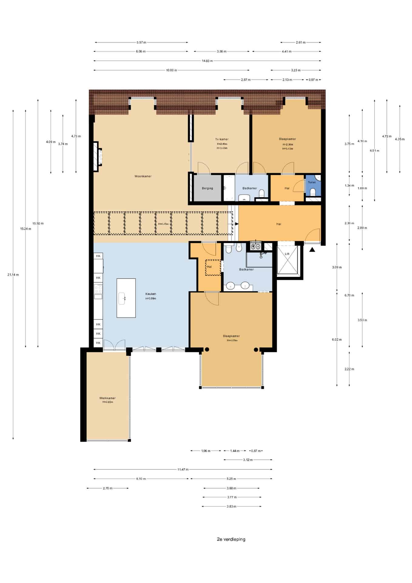 - Riant dakterras van ca 25m²;