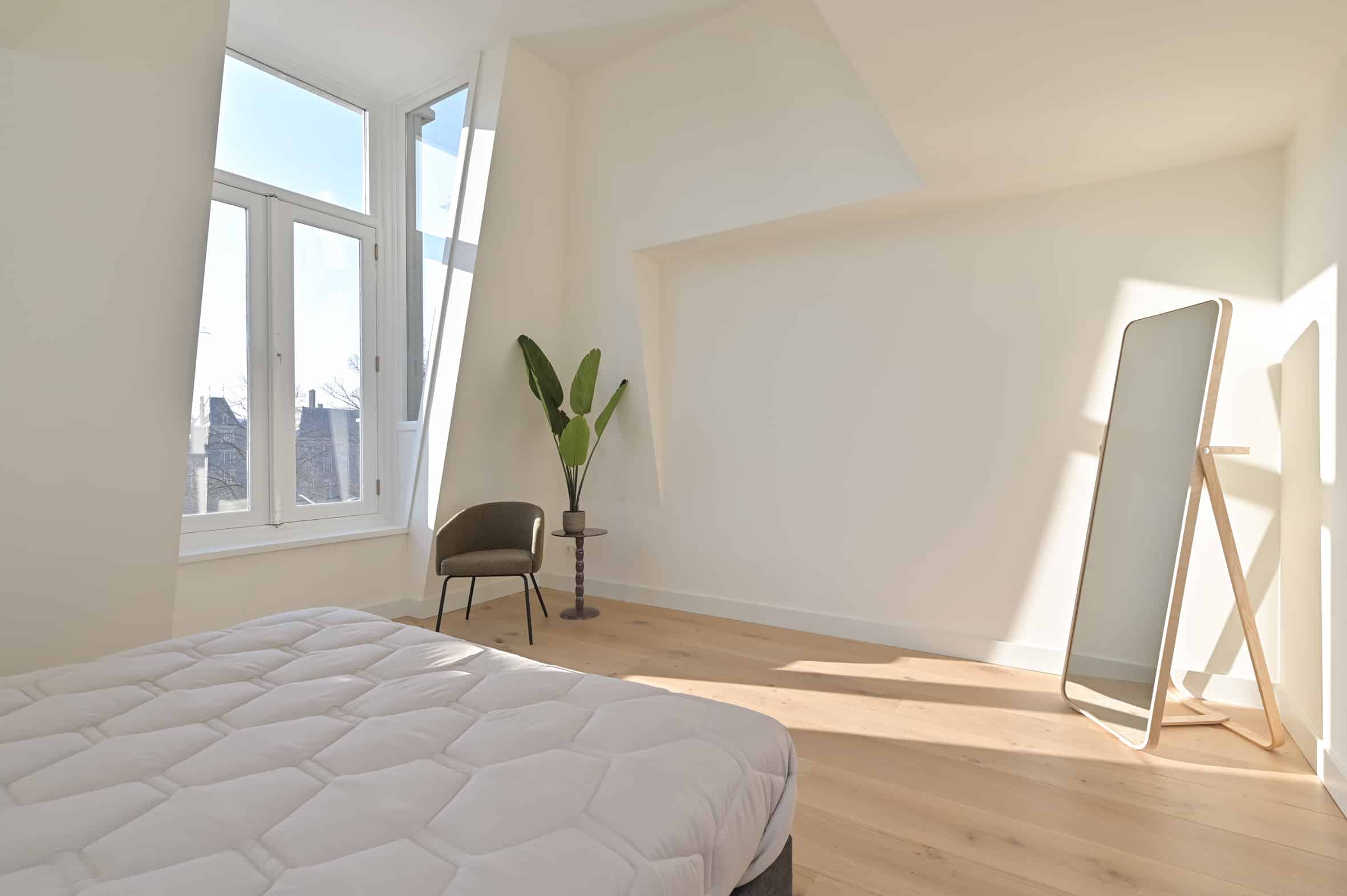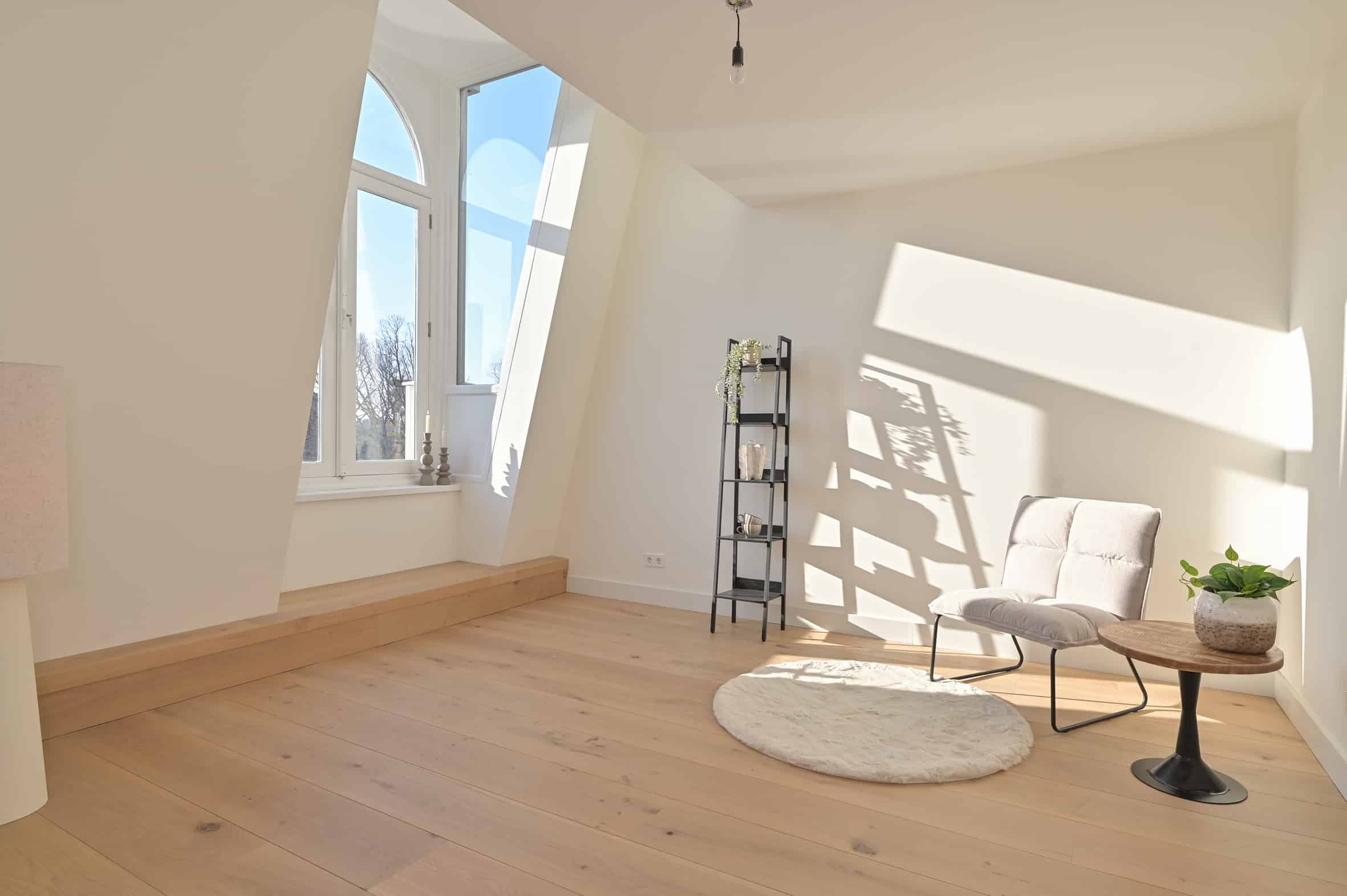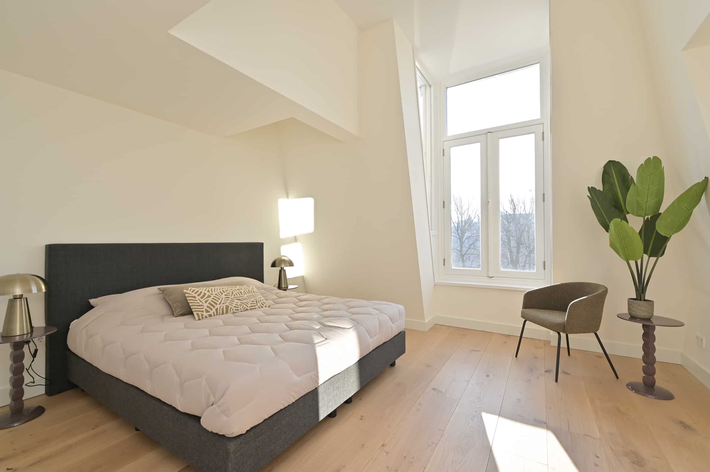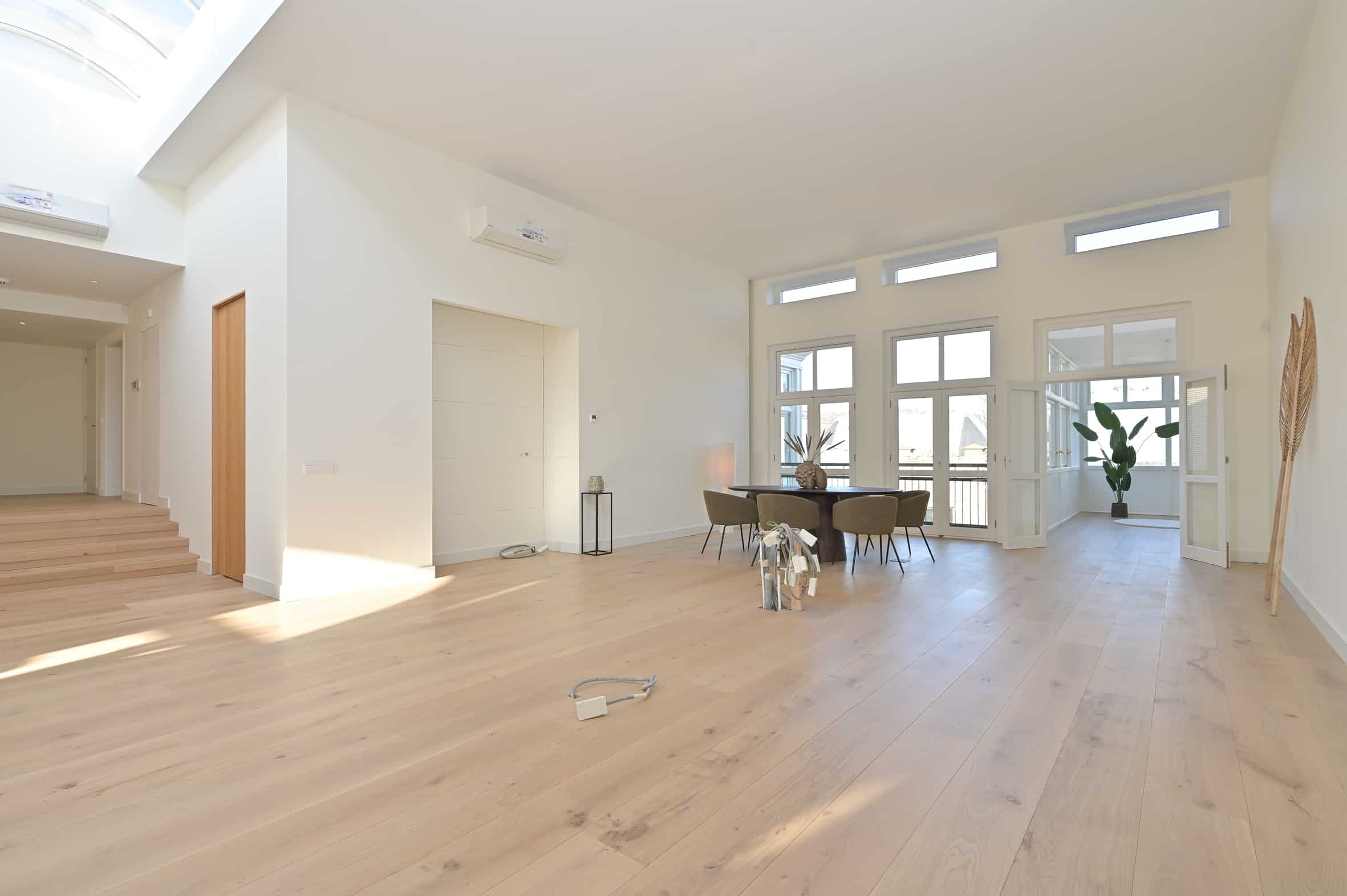 The property offers a high-quality foundation while leaving room for personalization. This allows you to effortlessly create a pied-à-terre that seamlessly fits your lifestyle. The penthouse features sleekly finished walls, underfloor heating with a wooden floor, modern lighting, air conditioning, and fully renewed installations. The kitchen and bathrooms can still be designed entirely to your own taste, enabling you to create your own signature penthouse.