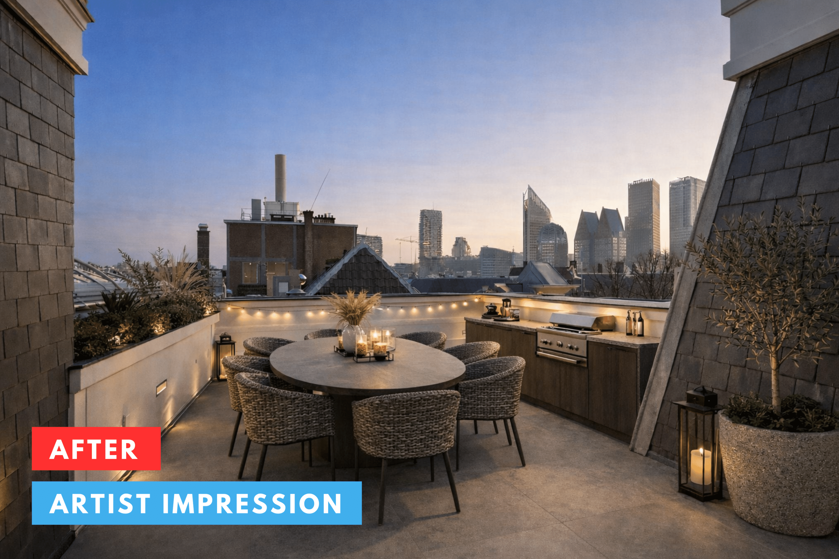 The ultimate sense of luxury is experienced on the top floor, where a private rooftop terrace of over 25 m² awaits you. Start your day with an espresso as the city slowly awakens, and end it with a glass of wine at sunset. In the heart of the city, yet completely private.