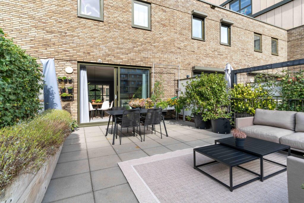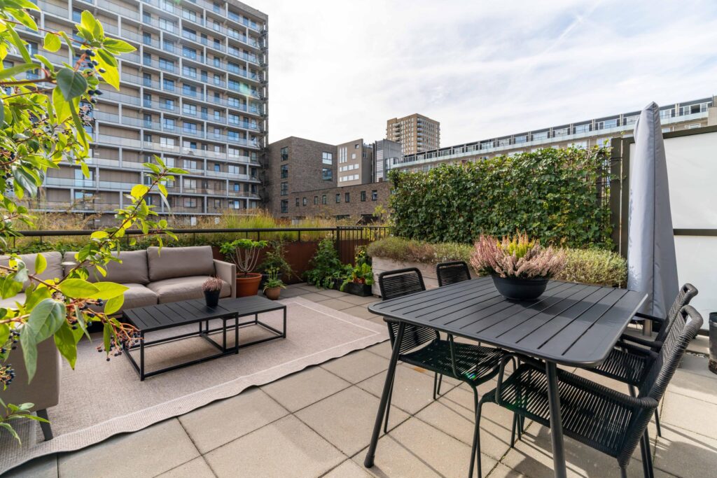 The large south-facing roof terrace is a wonderful place to enjoy the sun. Whether you love dining together, creating a green rooftop garden, or simply relaxing with a book, this is your private outdoor space where anything is possible.