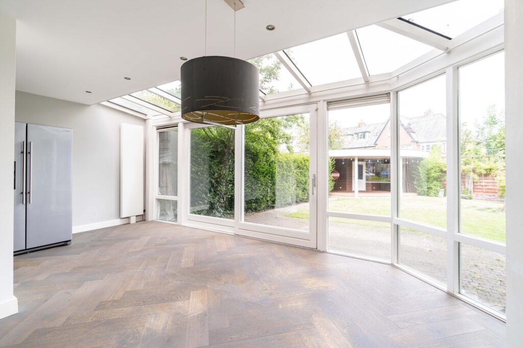 This family home has a nice bright (extended) living/dining room with study and semi-open kitchen. The kitchen has more than enough storage space and built-in appliances, such as a dishwasher, refrigerator and oven.