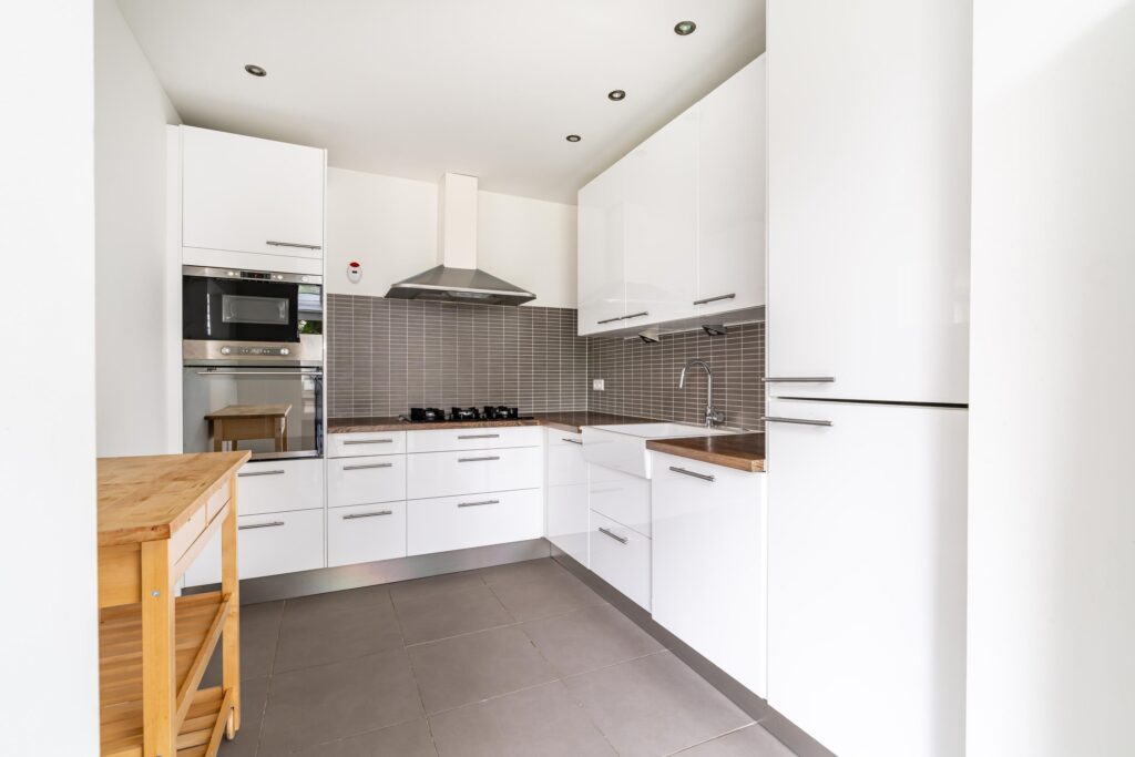 Dit familiehuis beschikt over een fijne lichte (uitgebouwde) woon-/eetkamer met studeerkamer en half open keuken. De keuken heeft meer dan voldoende opbergruimte en inbouwapparatuur, zoals vaatwasser, koelkast en oven.