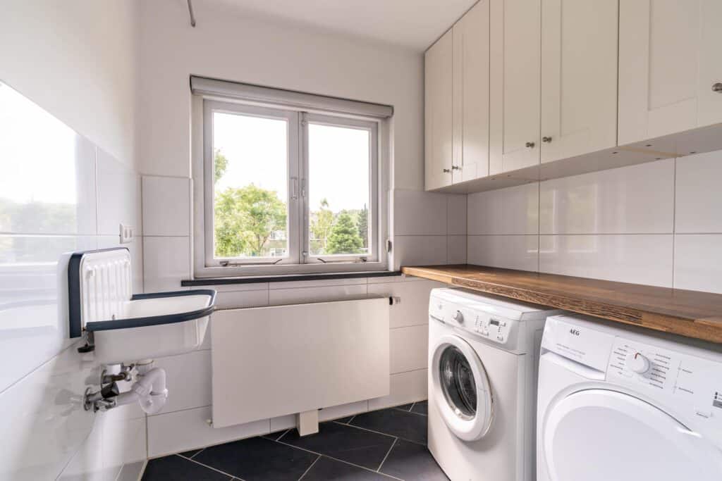 On the upper floors there are 3 bedrooms, 2 bathrooms and a separate laundry room.