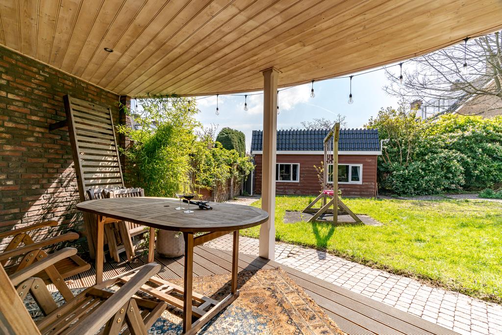 Een goed gerenoveerde, uitgebouwde hoekwoning met heerlijke tuin aan drie zijden, een studio (geluidsdicht en uitgebreide verlichting, geheel geïsoleerd), prieel met veranda en achterom.