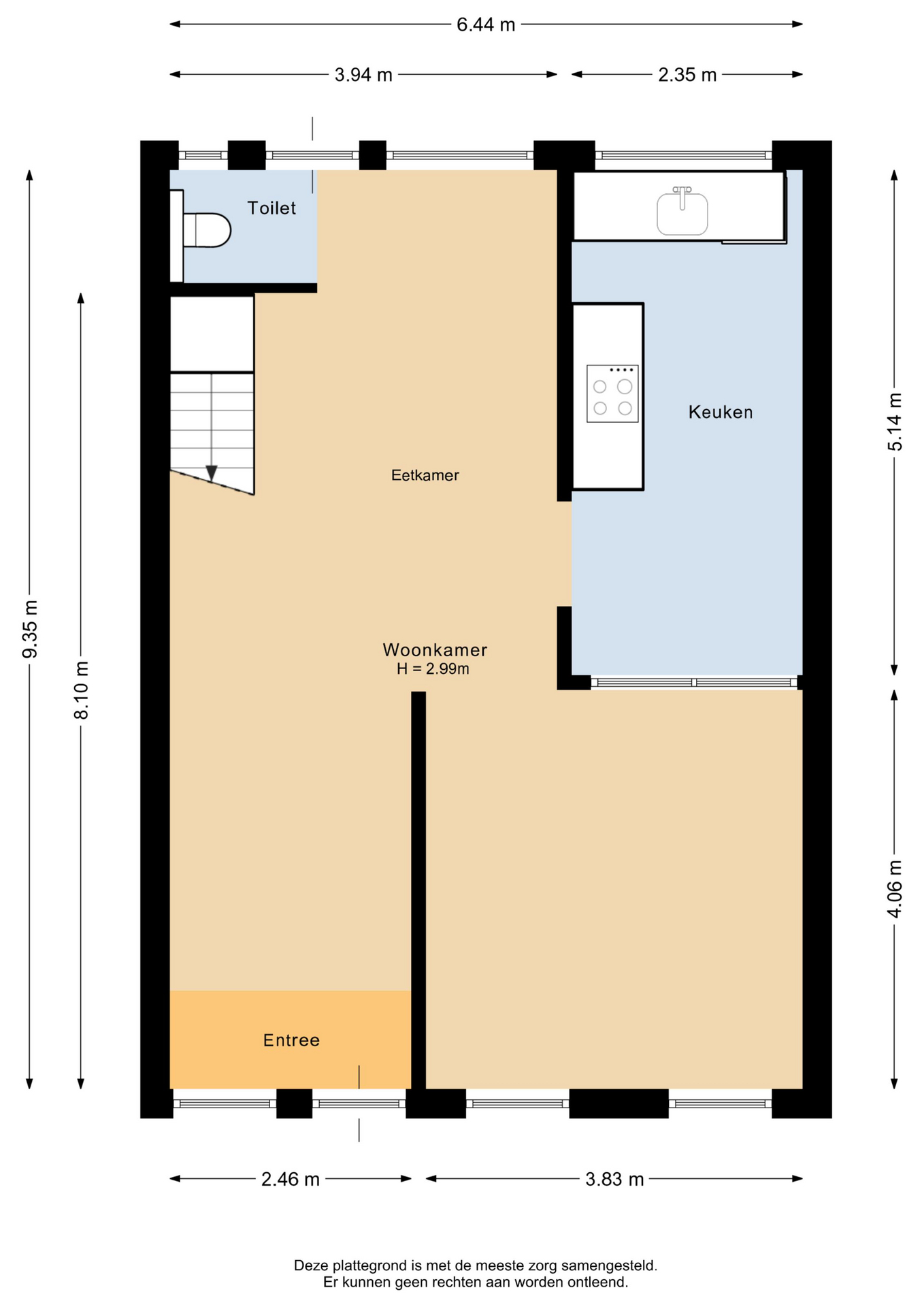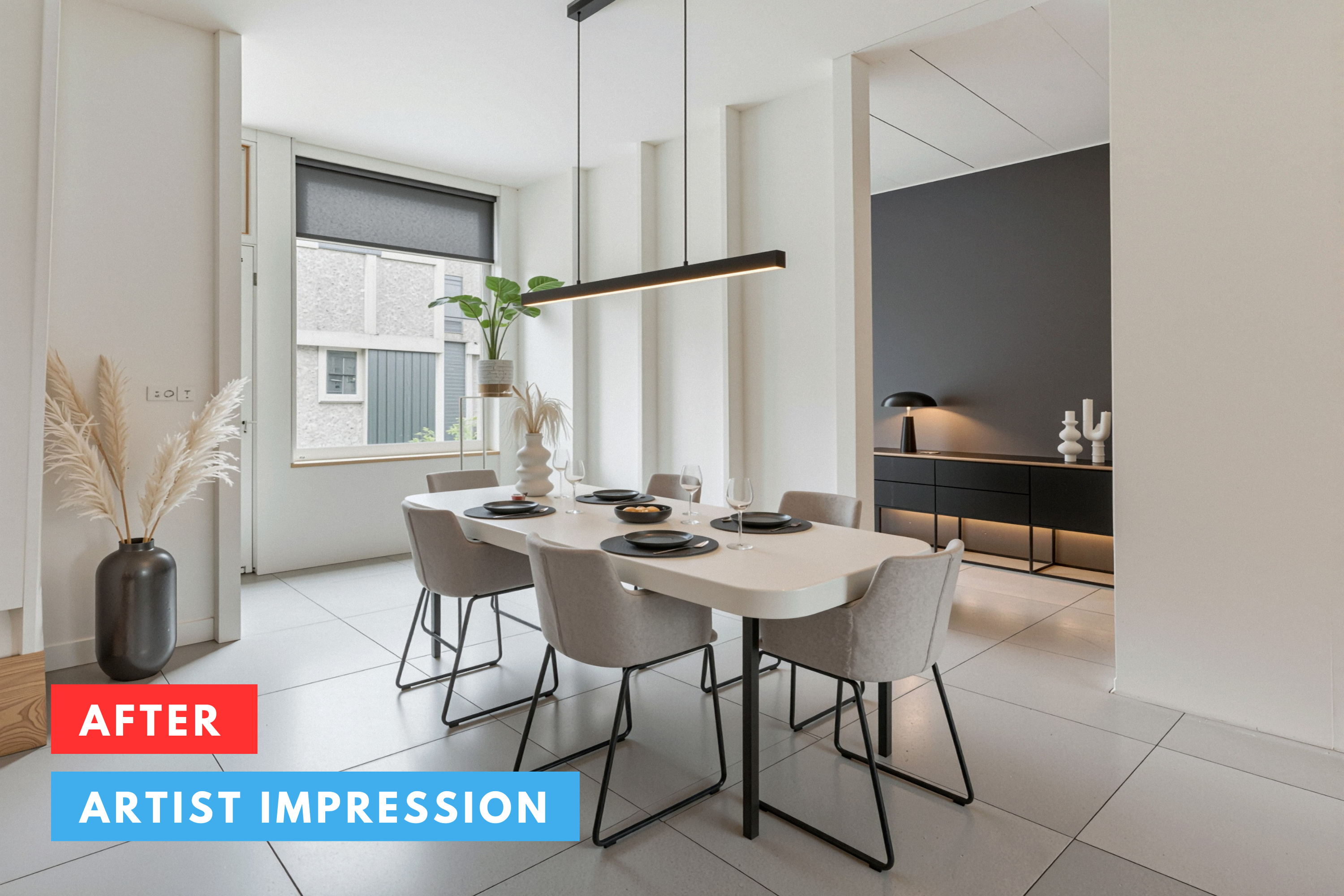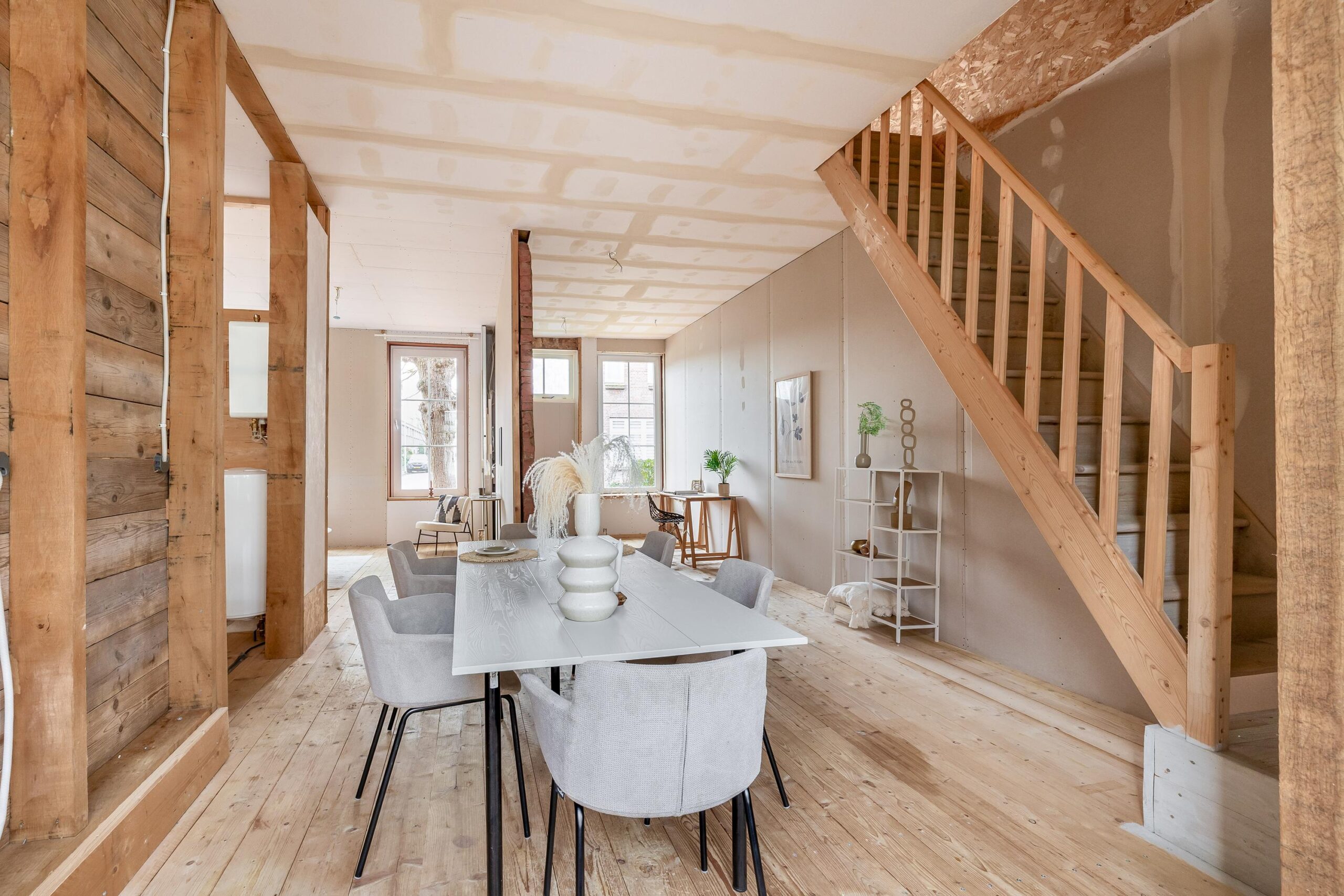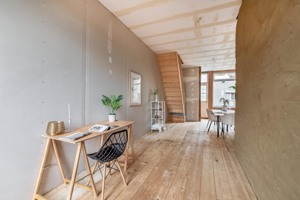 De begane grond is momenteel ingedeeld met twee kamers en half open ruimte. Wil je liever een meer open leefruimte of juist extra kamers? Het is allemaal mogelijk, de indeling is makkelijk aan te passen.