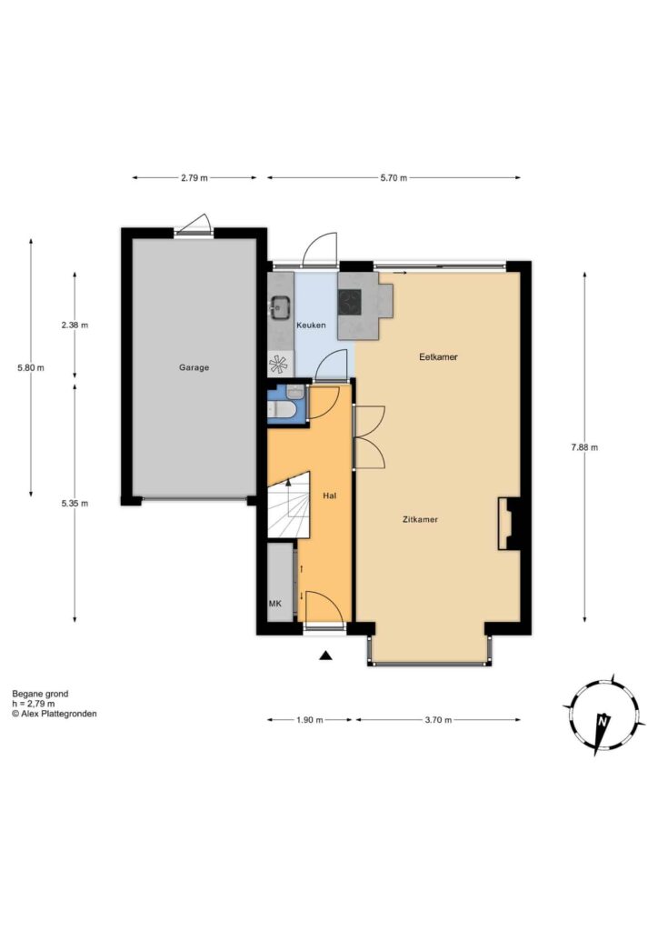 Through the living room, kitchen and garage you have access to the sunny backyard facing south. The garden has recently been transformed into an ideal family garden.