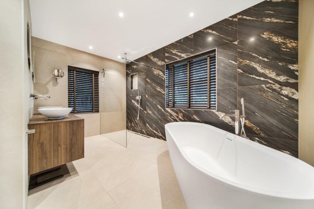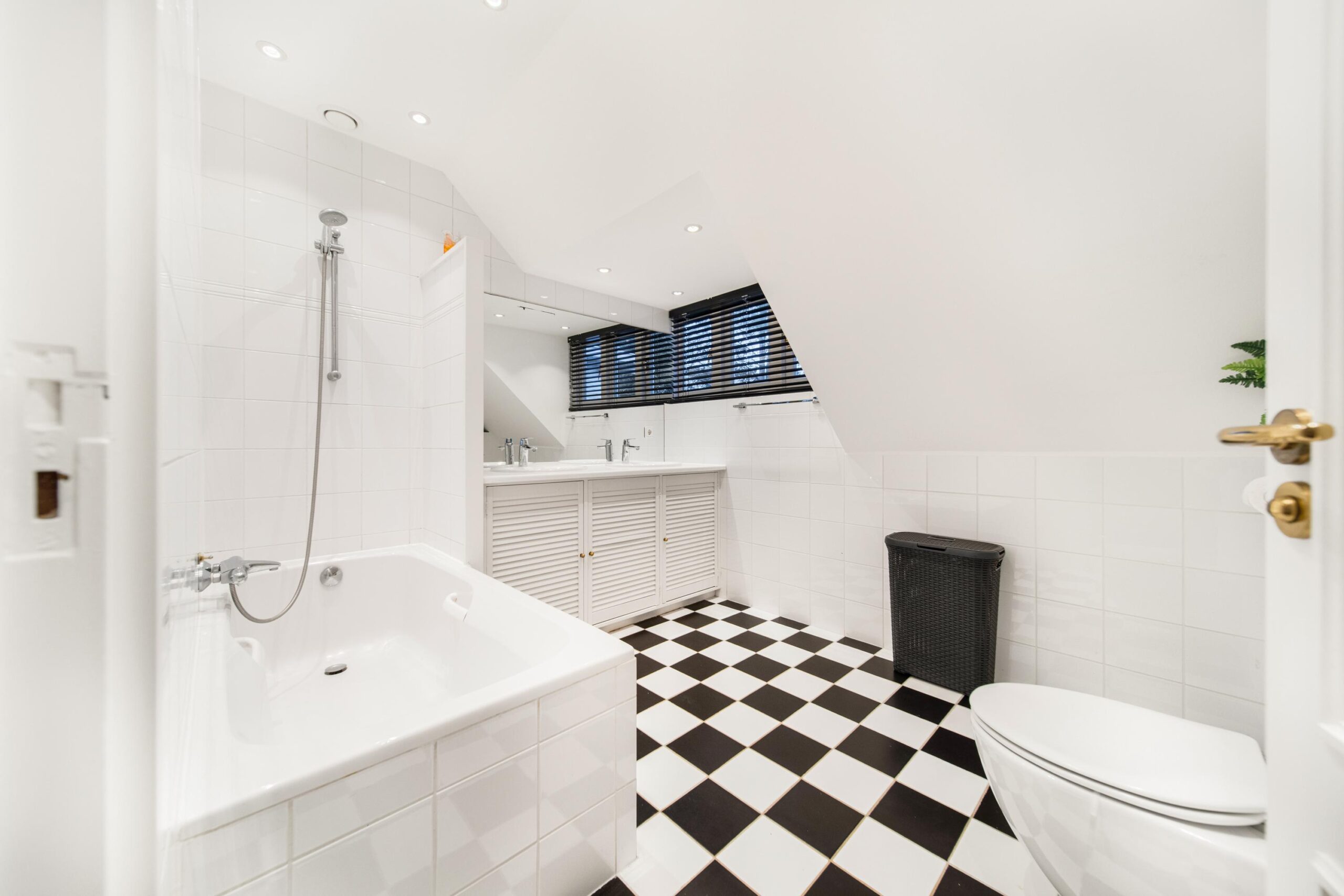 Gelijkvloers wonen behoort tot de mogelijkheden dankzij de royale master bedroom op de begane grond, voorzien van inloopkasten en luxe badkamer. Op de bovenverdieping bevinden zich vier slaapkamers, elk met een eigen badkamer en toilet, een ideale situatie voor grotere gezinnen of internationale families die gewend zijn aan ensuite living. Vanuit deze verdieping is er ook toegang tot een zonnig terras met uitzicht op de groene, rustige omgeving.