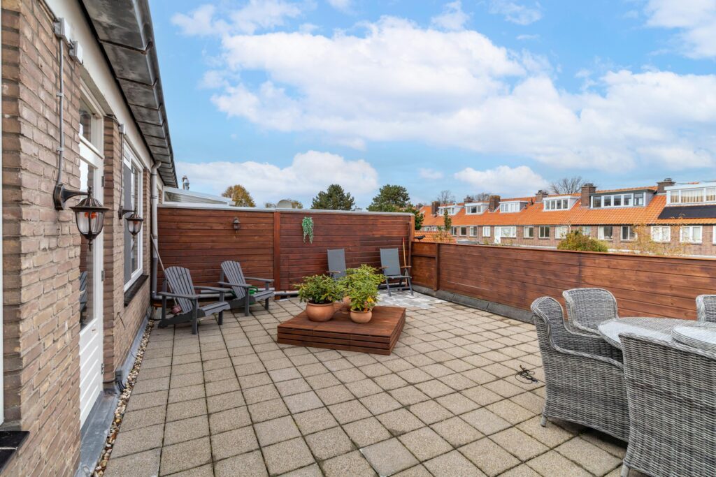 Een van de absolute blikvangers is het riante dakterras van circa 43 m². Hier geniet je volop van rust, zon en privacy, midden in het centrum van Wassenaar. Het terras vormt een perfecte plek voor een diner met vrienden of gewoon om heerlijk buiten te ontspannen.