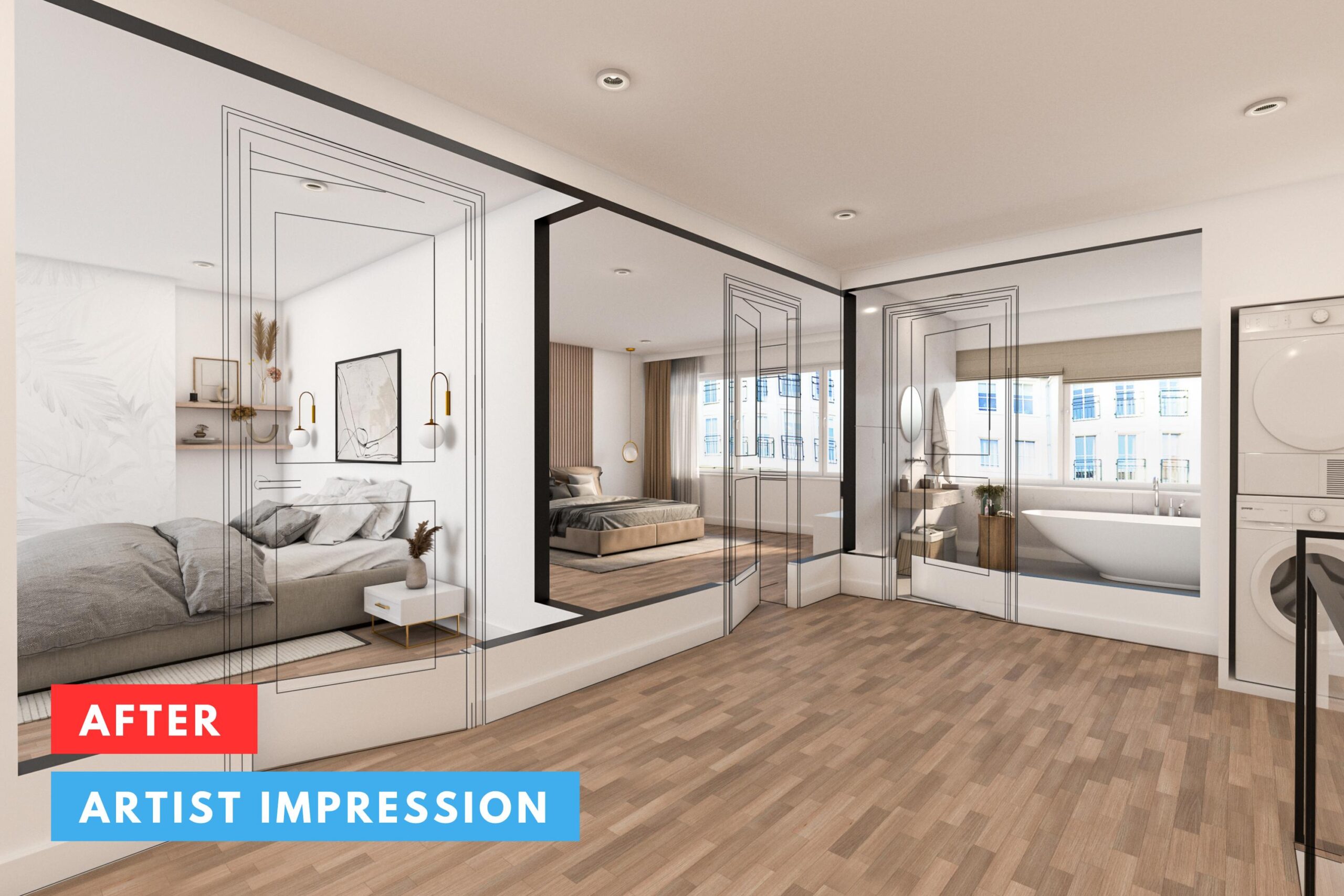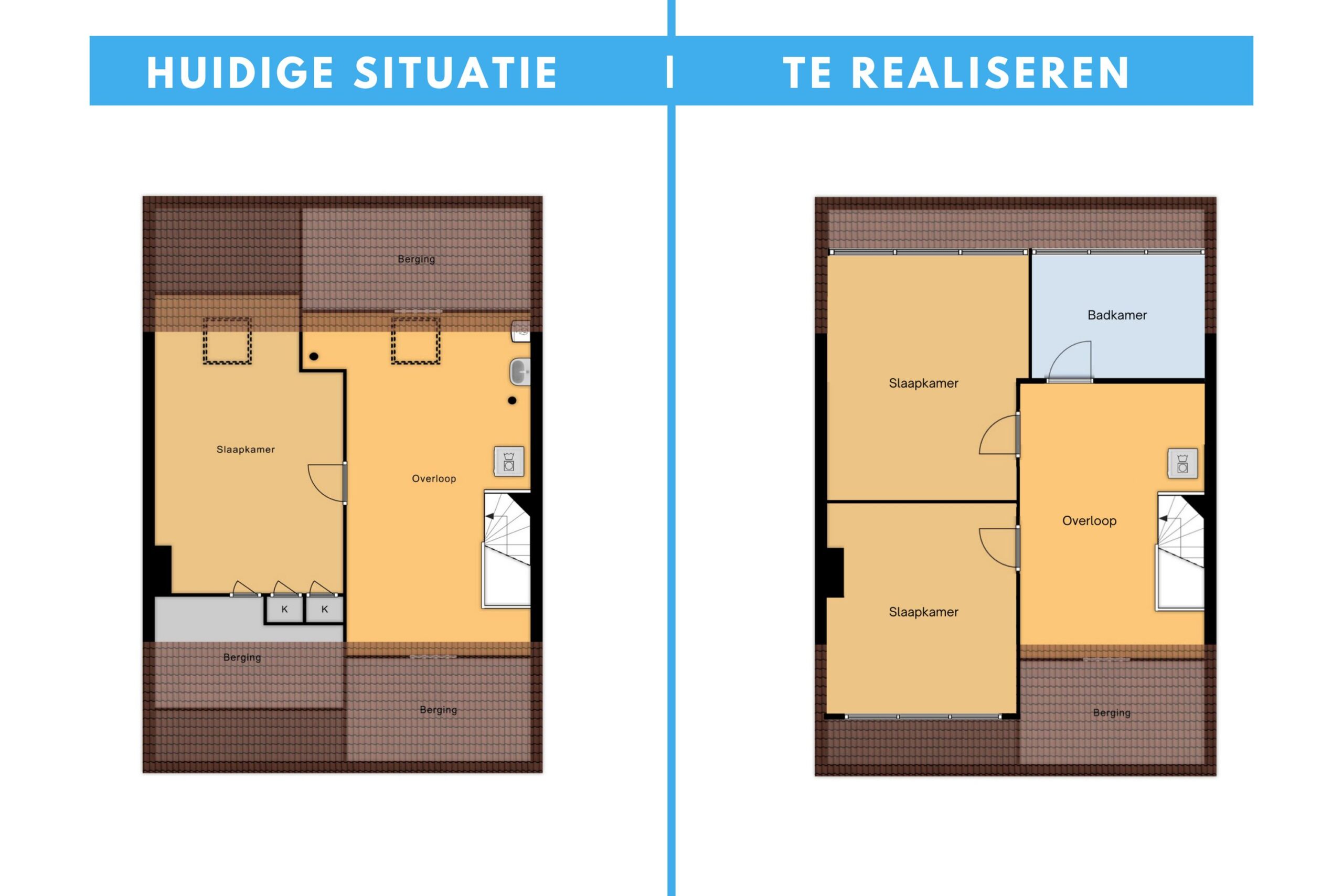 - 2 slaapkamers, royale multifunctionele ruimte en 1 badkamer, gemakkelijk te realiseren naar 4 slaapkamers en 2 badkamers (zie extra plattegrond en artist impression);