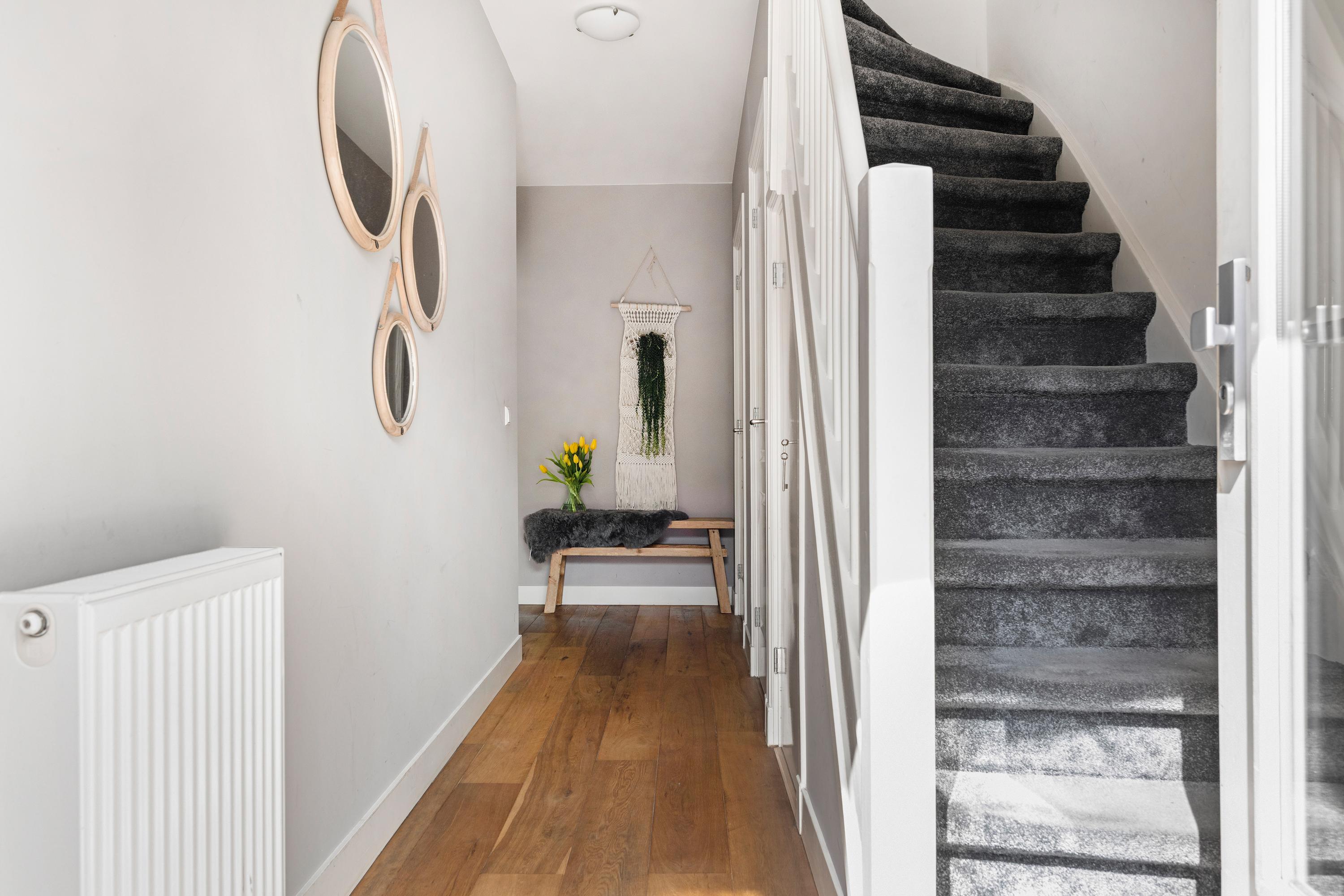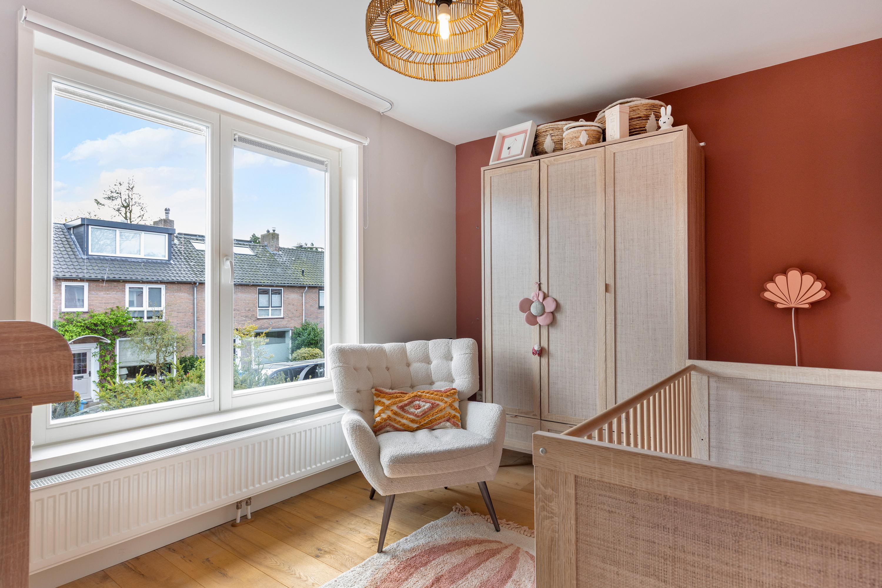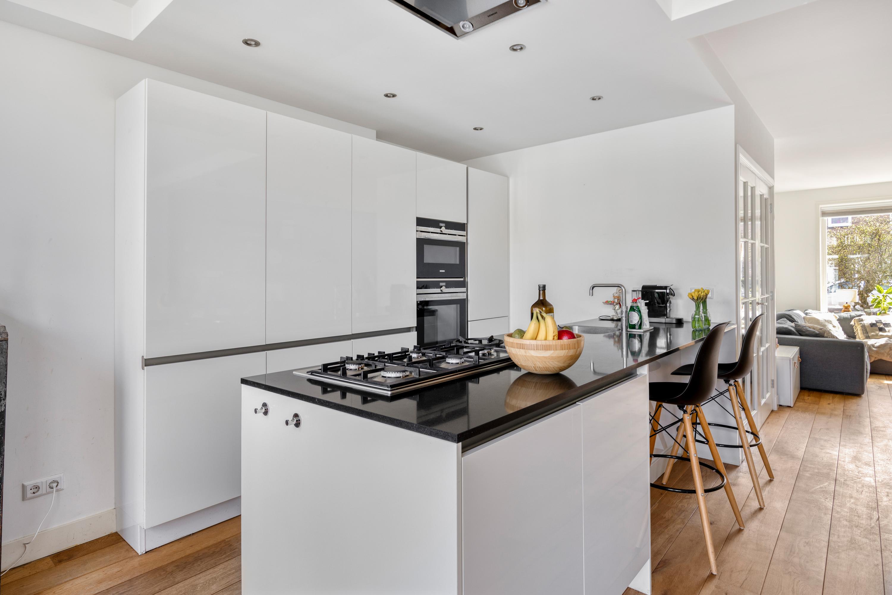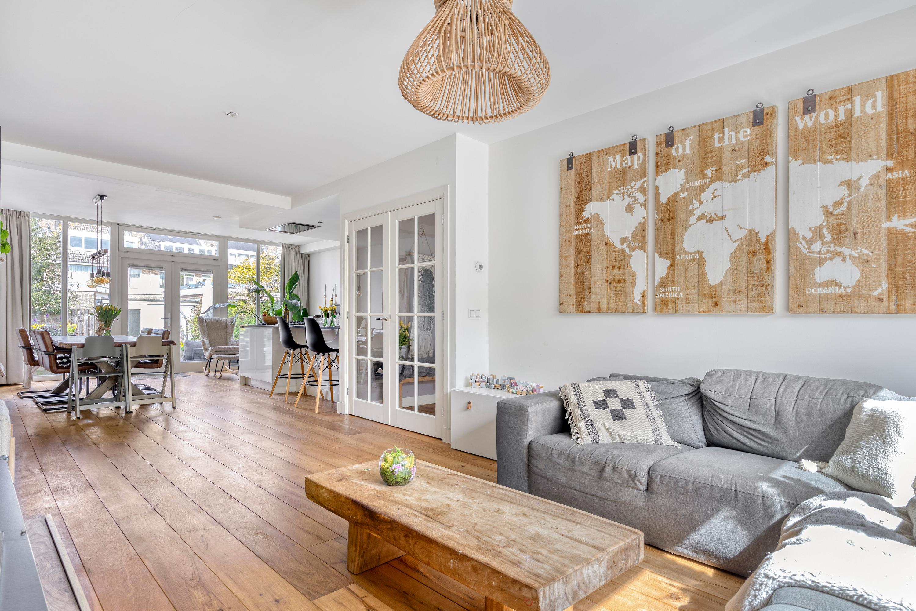 Binnen word je direct verrast door de zeer lichte en ruime woonkamer met een open moderne woonkeuken die van alle gemakken is voorzien. Het gezellige barretje maakt dit dé plek waar de kids ’s ochtends aanschuiven voor ontbijt of ’s middags hun huiswerk doen terwijl jij kookt. De gehele woning is afgewerkt met een mooie houten vloer en dankzij de charmante dubbele openslaande deuren – zowel van de hal naar de woonkamer als van de woonkeuken naar de tuin – voelt het geheel extra ruim en verbonden. Op de eerste verdieping vind je drie comfortabele slaapkamers en een royale, moderne badkamer. De bovenste verdiepingen bieden nog eens twee ruime slaapkamers, vergroot door dakkapellen, en een tweede badkamer die zo goed als nieuw is. Beide verdiepingen beschikken bovendien over een apart toilet en de woning is volledig over drie verdiepingen uitgebouwd, wat zorgt voor verrassend veel leefruimte.