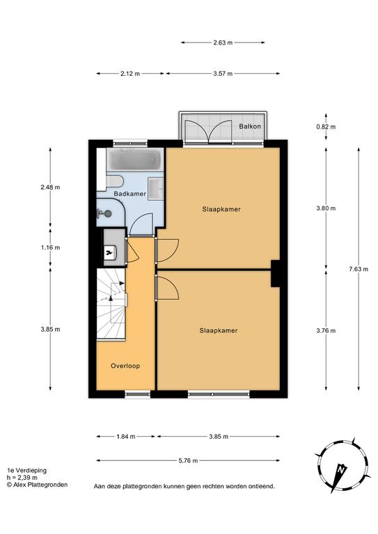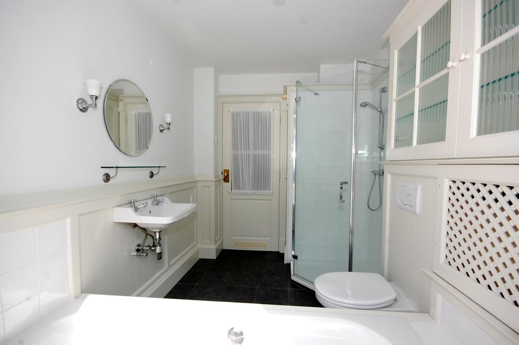ruime overloop, badkamer met douche, ligbad en toilet, hoofdslaapkamer (ca. 3.80mx 3.50m) met openslaande deuren naar achterbalkon, voorslaapkamer (ca. 3.80mx 3.80m).