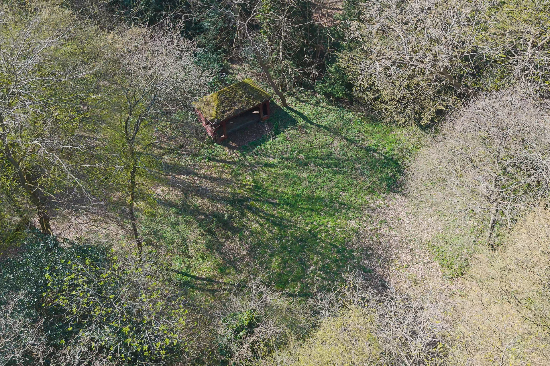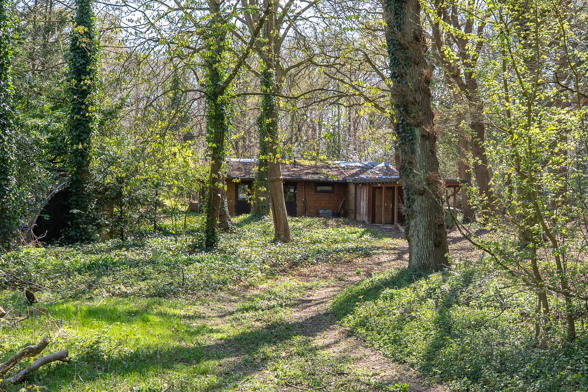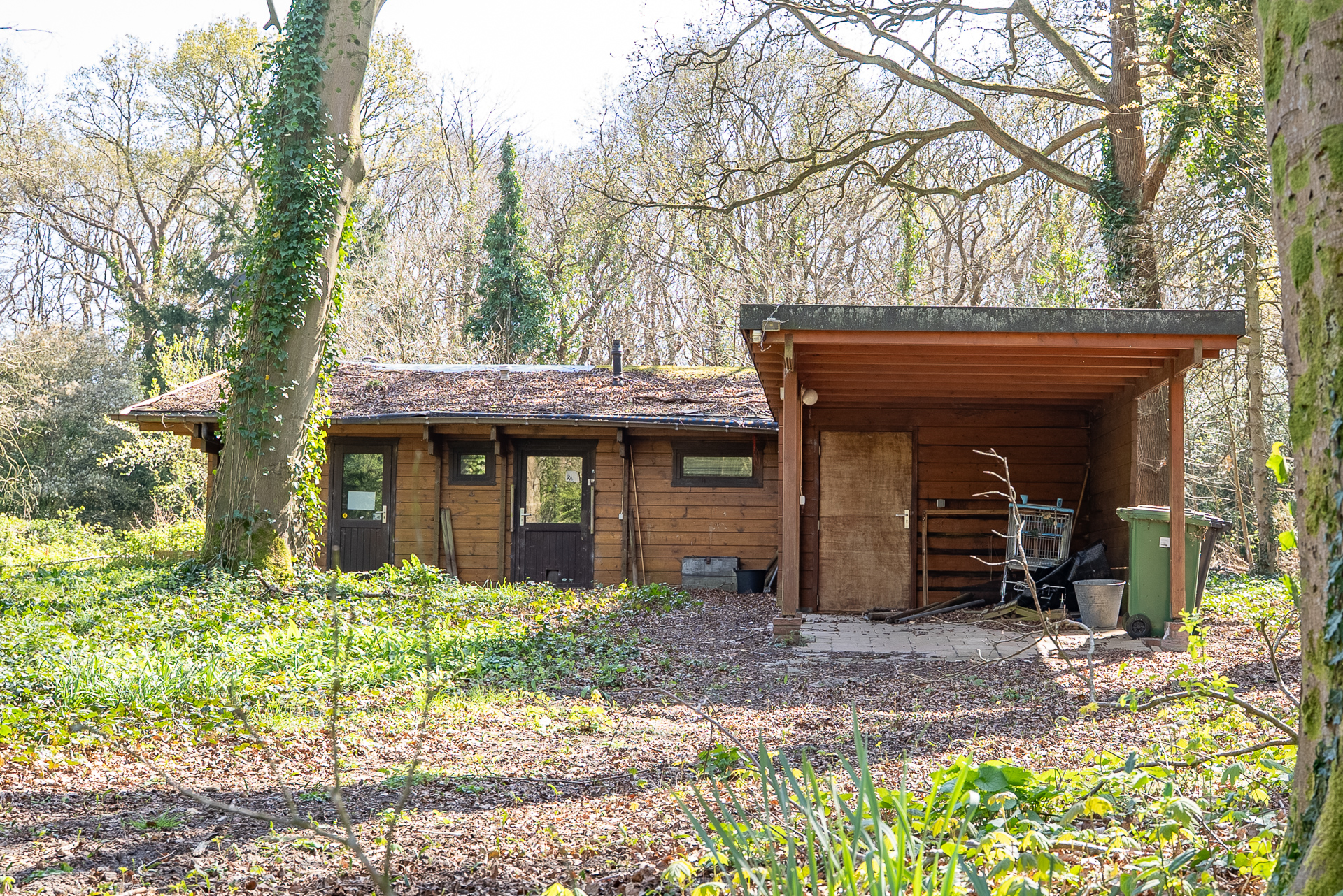 Op het ene perceel ligt de dienstwoning, op het andere perceel een boshut.