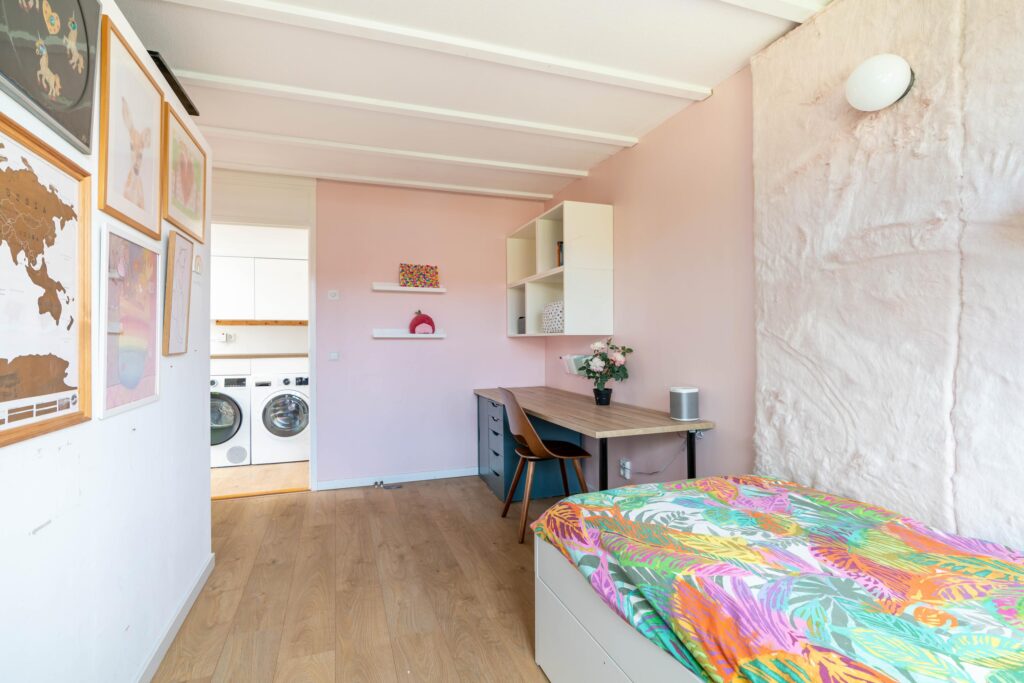 Met 5 slaapkamers en 2 badkamers is er ruimte genoeg voor het hele gezin – iedereen zijn eigen plekje, maar ook voldoende plek om samen te zijn. Op de tweede verdieping vind je een praktische overloop die ideaal te gebruiken is als wasruimte, zodat alles netjes en uit het zicht blijft.