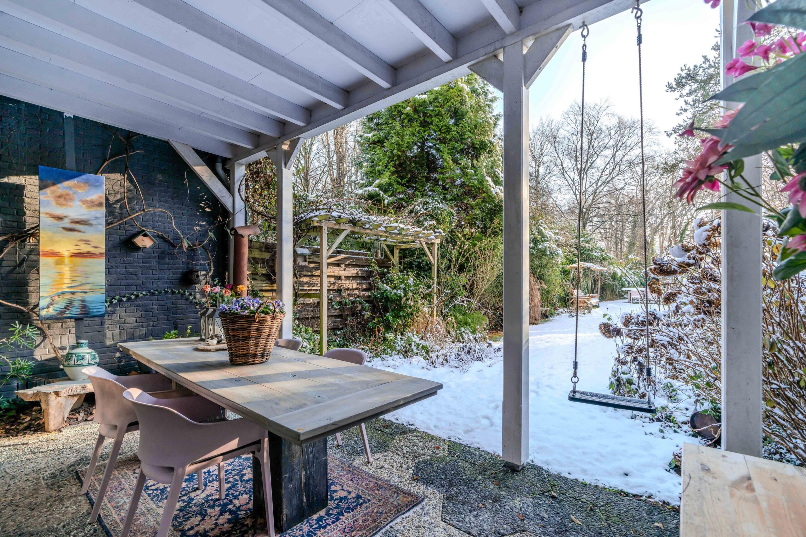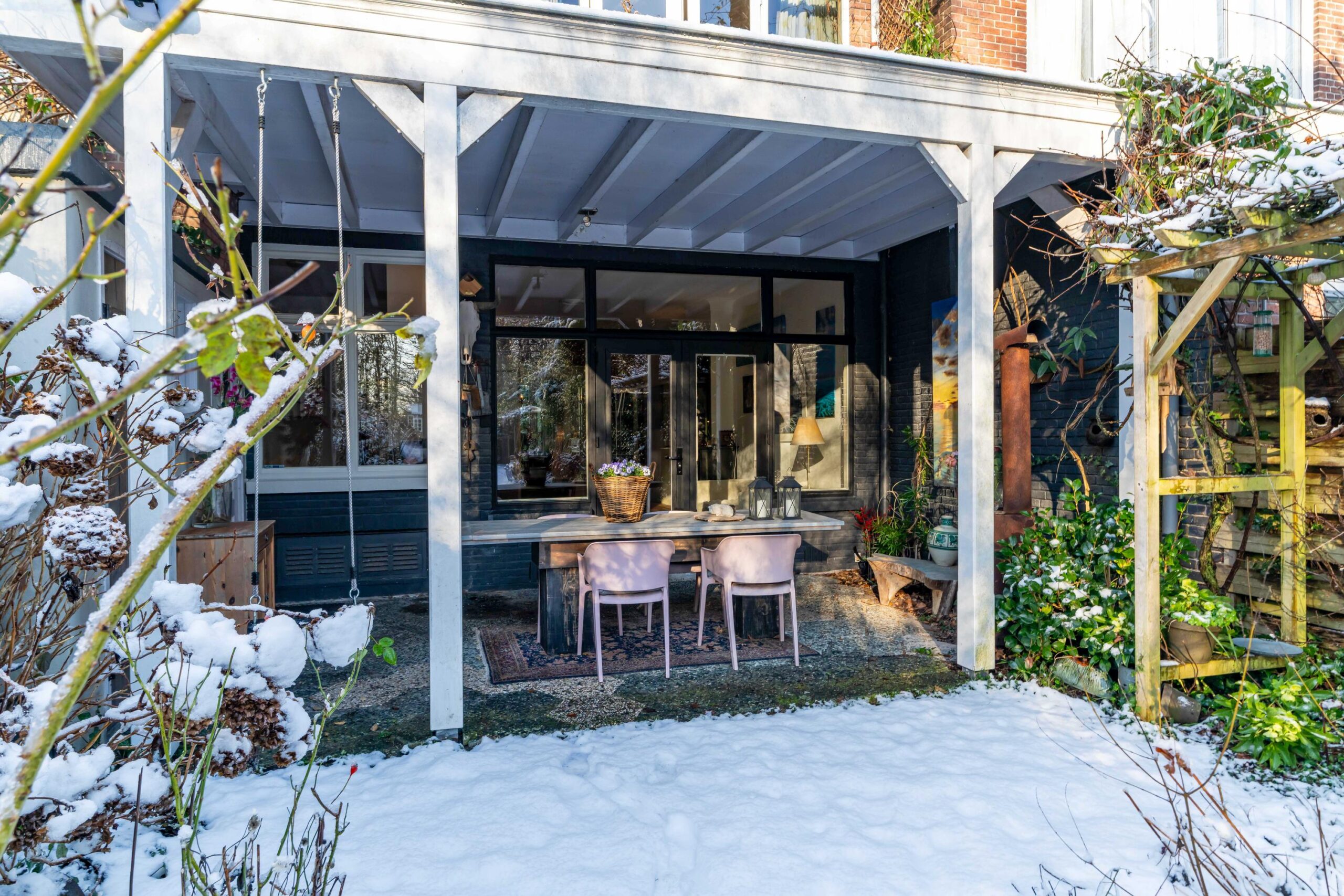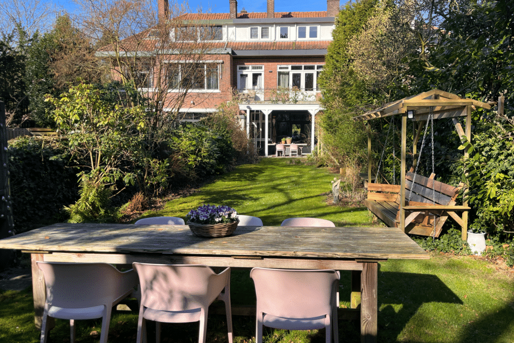 Directly adjacent to the house is a cozy covered dining area, a wonderful place to spend long evenings. The garden is very deep and offers plenty of privacy, making it ideal for children to play, with space for, for example, a swing or play equipment. At the back of the garden, you will find a second dining area with a charming outdoor fireplace, allowing you to enjoy the outdoors at any time of day.
