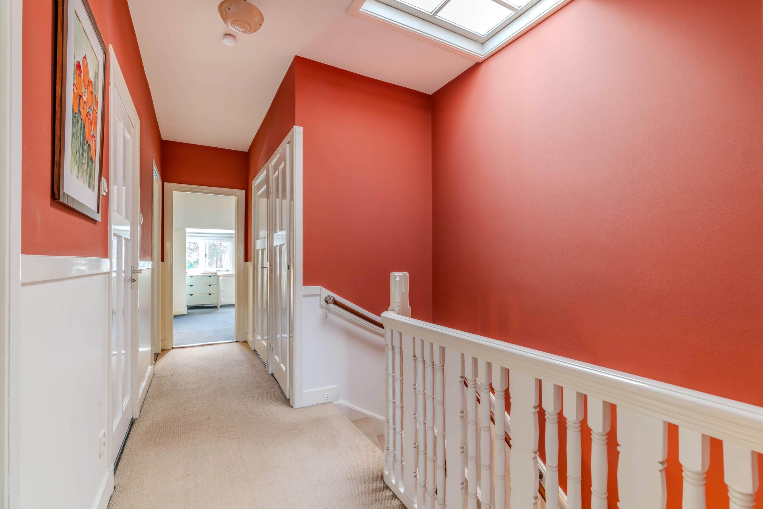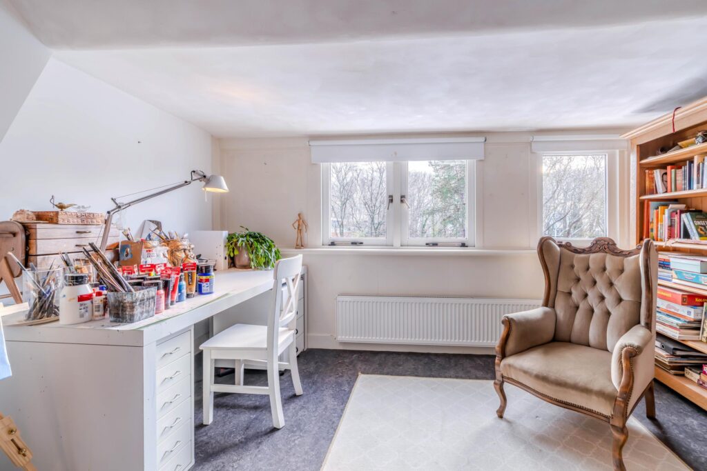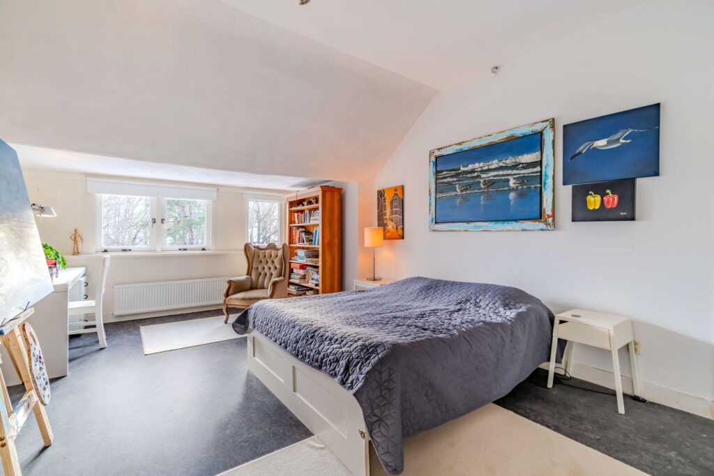 Op de eerste verdieping bevinden zich twee royale slaapkamers, beide voorzien van een eigen open haard, wat zorgt voor een bijzondere en luxe uitstraling. Daarnaast is er een fijne werkkamer en een zeer ruime badkamer met een douche, een ligbad en een dubbele wastafel, waardoor comfort en ontspanning hier centraal staan. De tweede verdieping biedt nog eens twee ruime slaapkamers, aangevuld met twee extra kamers die ideaal zijn als logeer-, hobby- of speelruimte. Ook is hier een tweede badkamer aanwezig met een wasmachineaansluiting, wat deze verdieping extra praktisch maakt. Tot slot beschikt de woning over een ruime kelder, perfect voor extra opslag of als multifunctionele ruimte.
