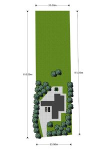 Een glooiende oprijlaan leidt naar de garage met plaats voor drie à vier auto’s, met extra parkeerruimte ervoor. Vanaf het toegangshek loopt een charmant voetpad naar de uitnodigende voordeur — een voorbode van de serene sfeer die u binnen te wachten staat.