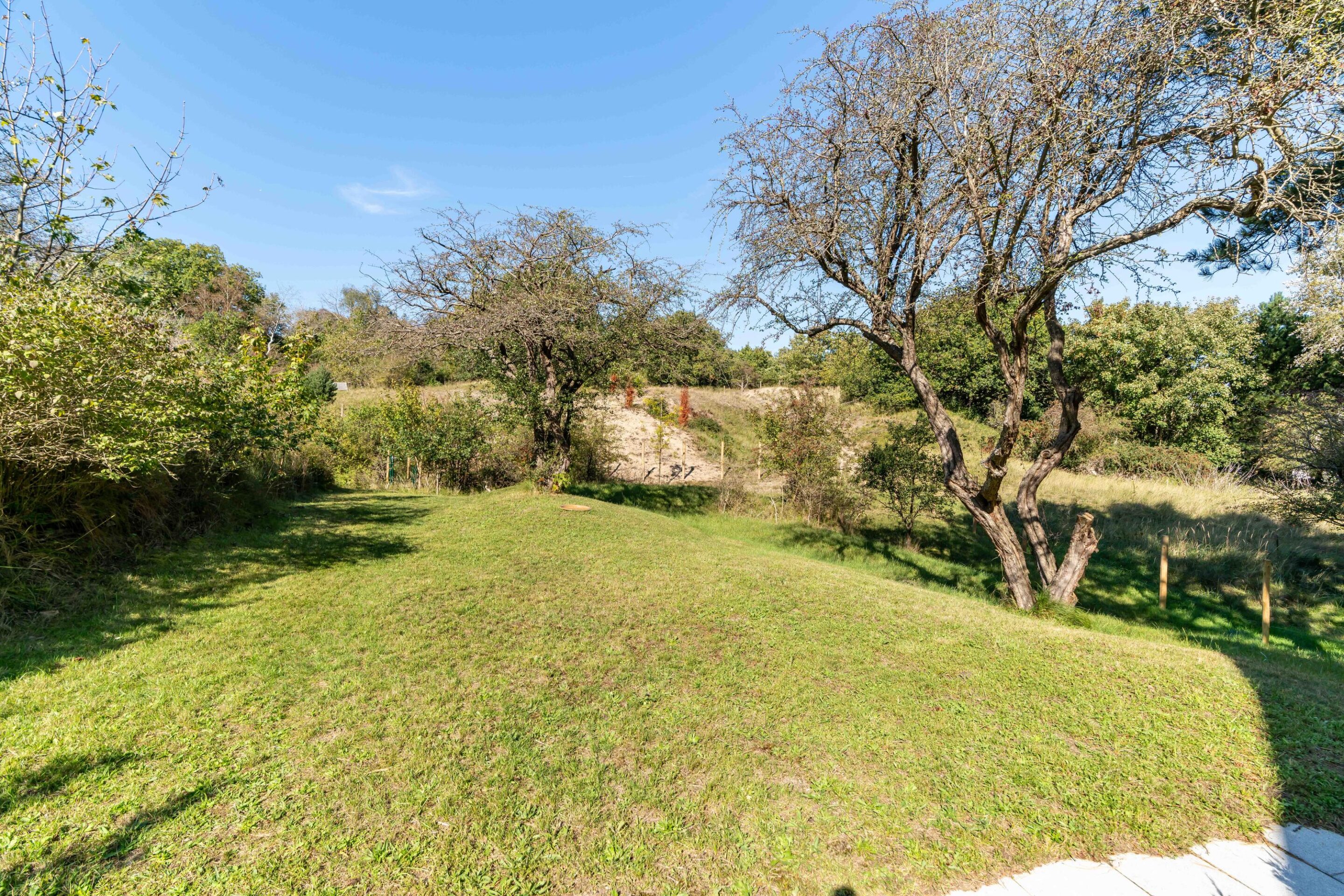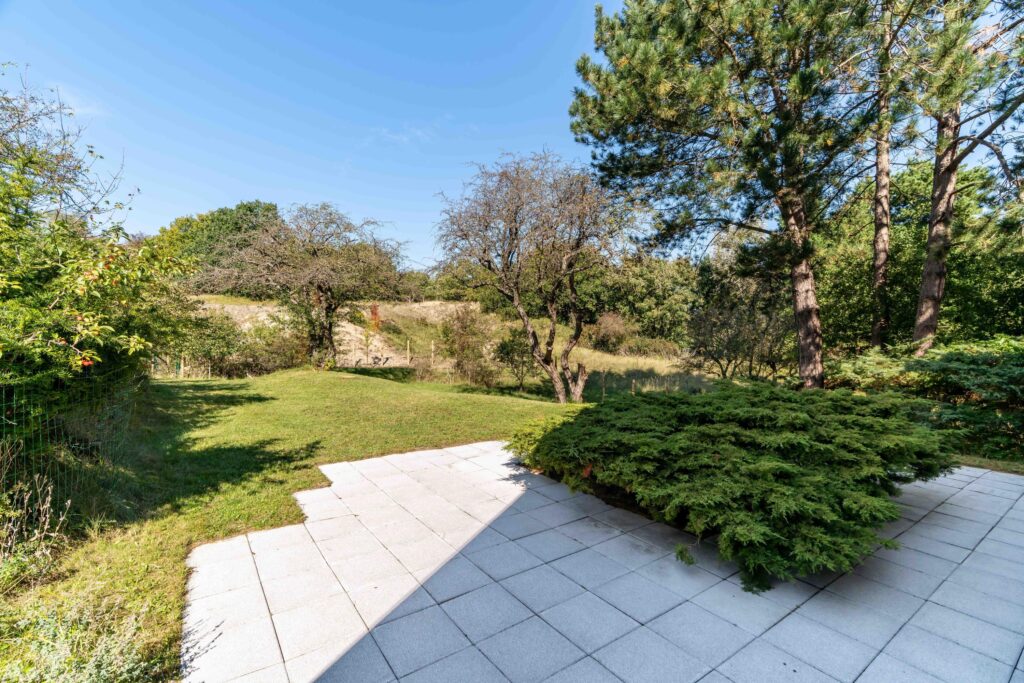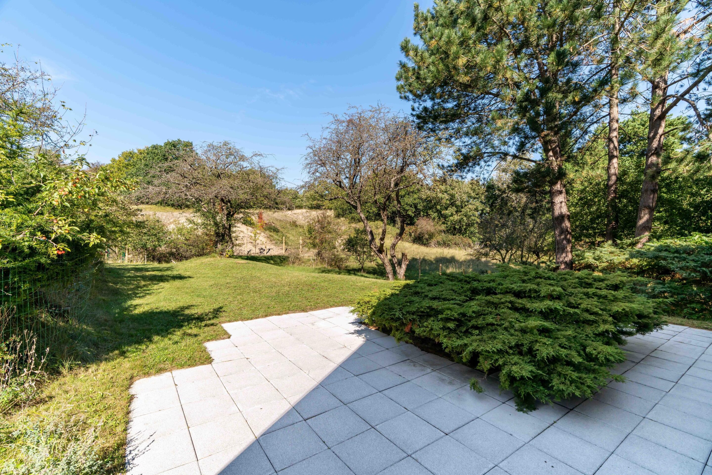 On the lower floor, natural light floods the large multipurpose room via wide windows and patio doors opening to a loggia and forecourt. This level also features a spacious bedroom with a fireplace, a complete bathroom, a laundry room, and technical room with central heating. A large indoor storage room connects directly to the garage.