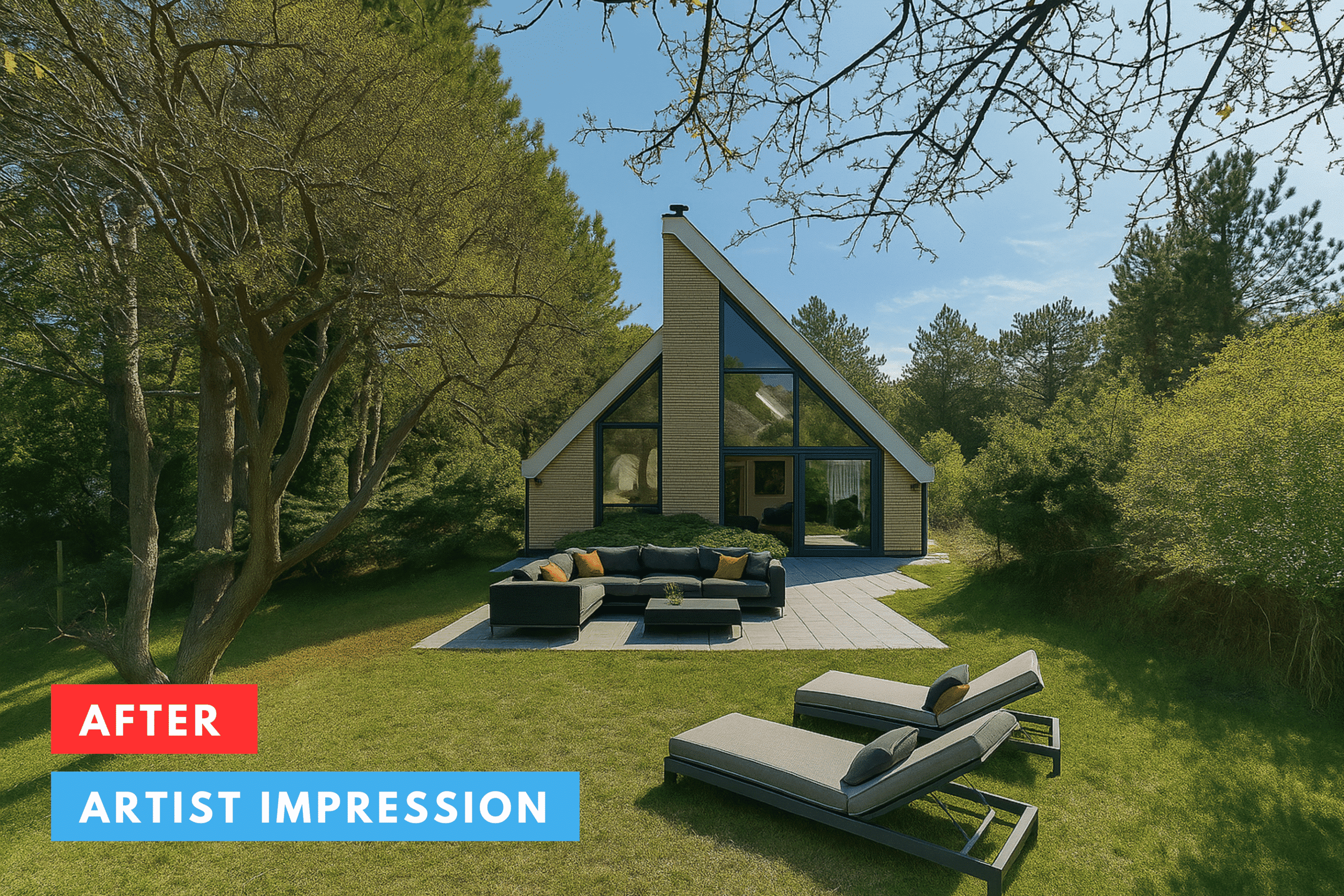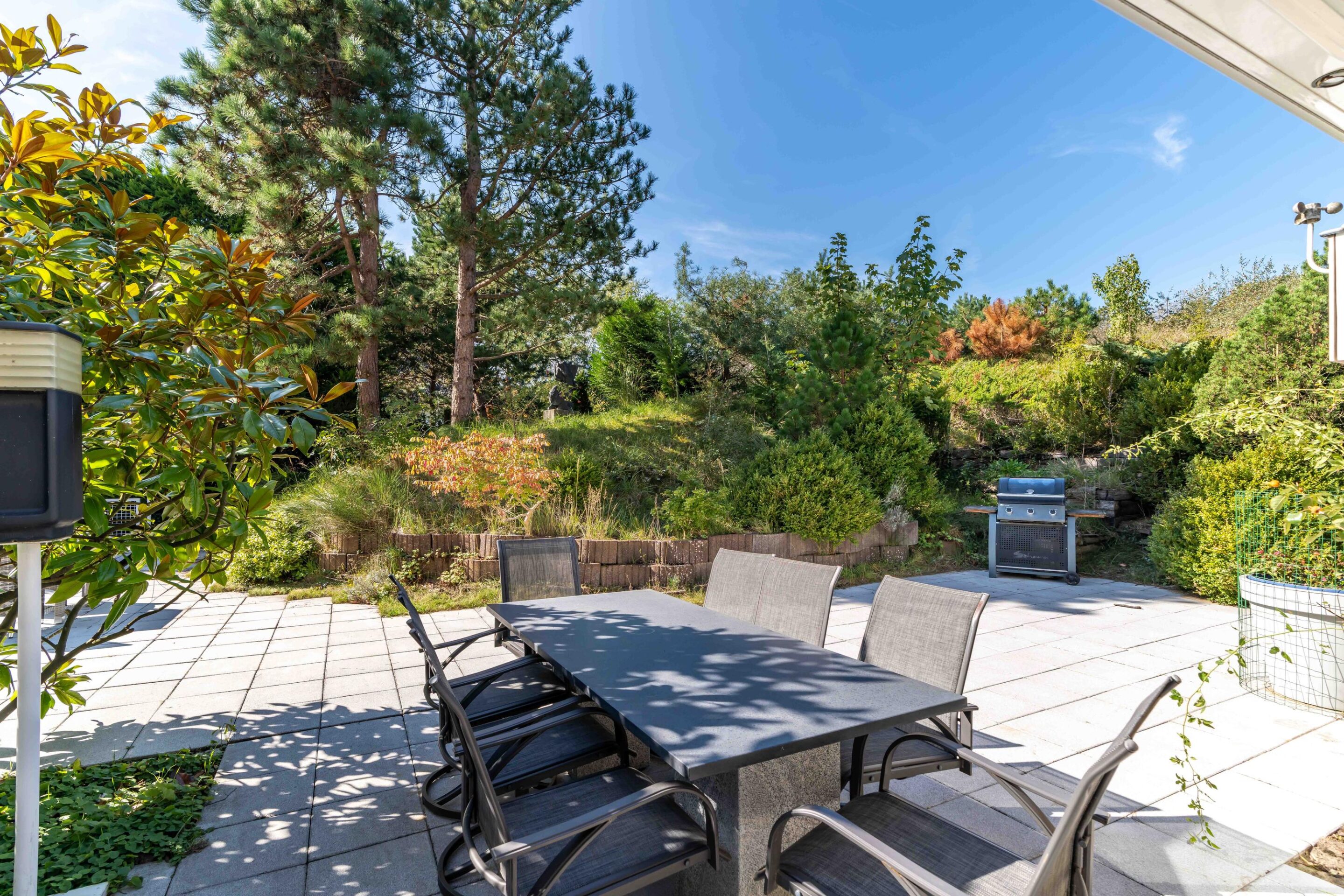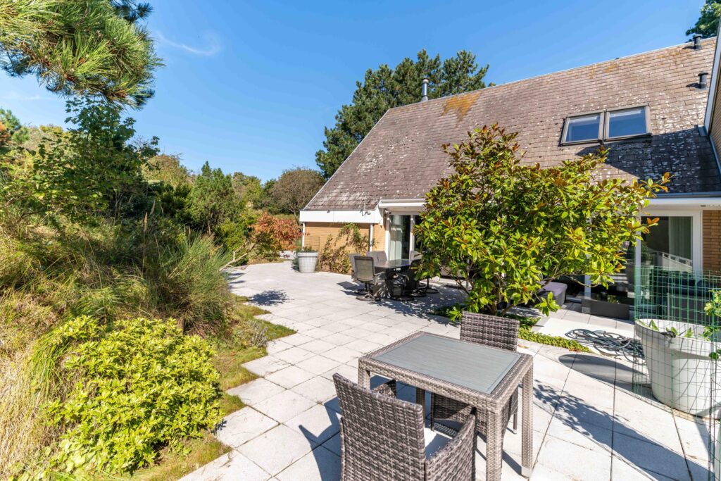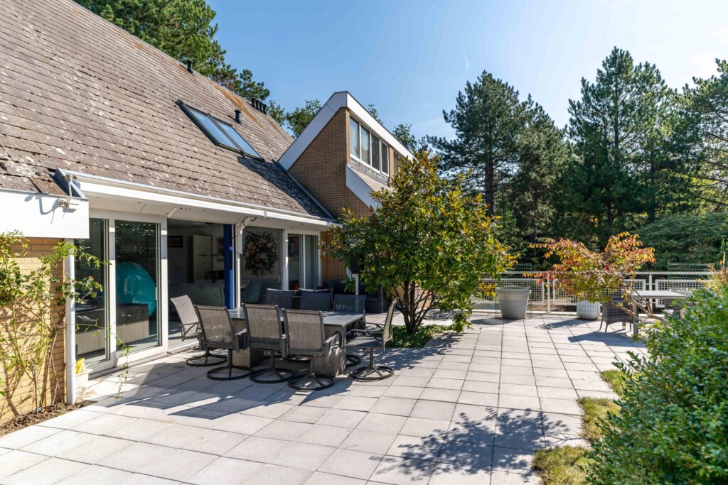 Het zonnige terras grenzend aan de woonkamer biedt de ideale plek om te ontspannen en naadloos te genieten van binnen- en buitenleven. Vanuit hier loopt u zo het stille duinlandschap van uw achtertuin in — een werkelijk unieke ervaring.