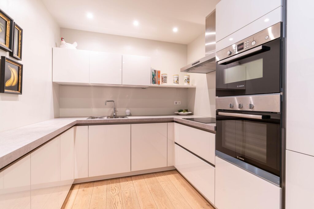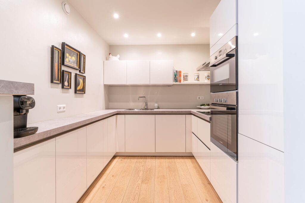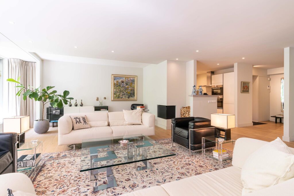 Het appartement beschikt over maar liefst 220 m² woonoppervlak met stijlvolle houten parket (Klassiek Jakarta wit geolied) – een zeldzaam formaat binnen dit geliefde complex. De ruime en lichte woon-/eetkamer beschikt over grote raampartijen en biedt direct toegang tot het heerlijke, zonnige terras. De half open keuken is van alle moderne gemakken voorzien, perfect voor kookliefhebbers en gezellige etentjes.