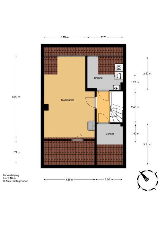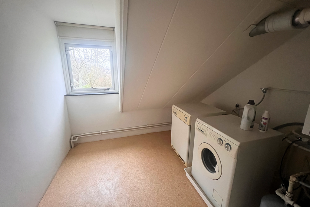 landing, spacious bedroom with a dormer window and storage room, laundry room with CV preparation (Nefit HR 2011) and space for washing machine and dryer, large storage room.