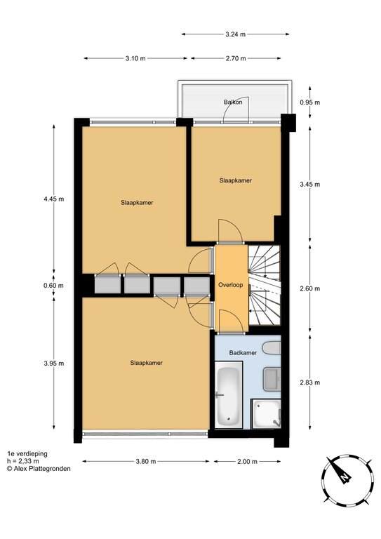 overloop, voorslaapkamer met vaste kasten, achterslaapkamer eveneens met vaste kasten, achterzijslaapkamer met balkon, badkamer met ligbad, douche, toilet en vaste wastafel;