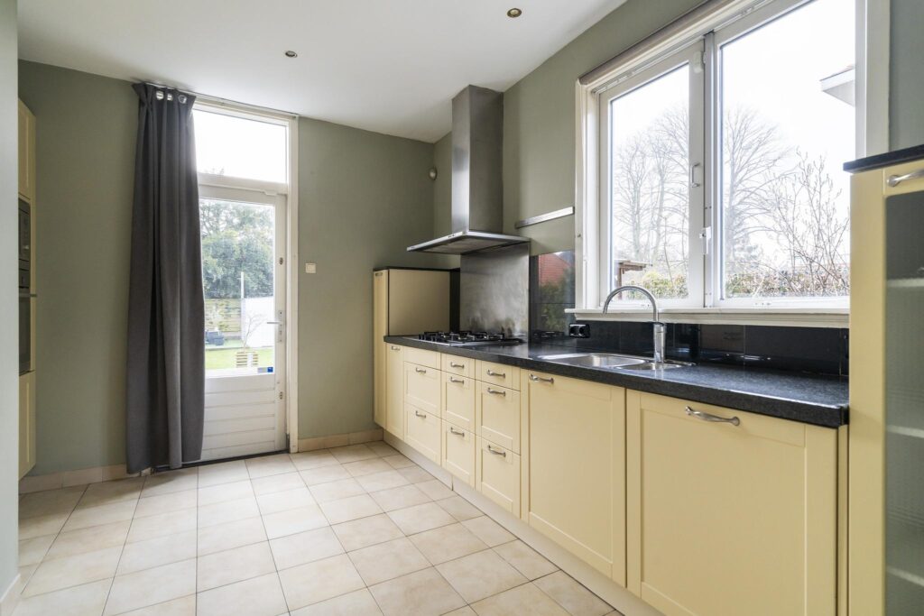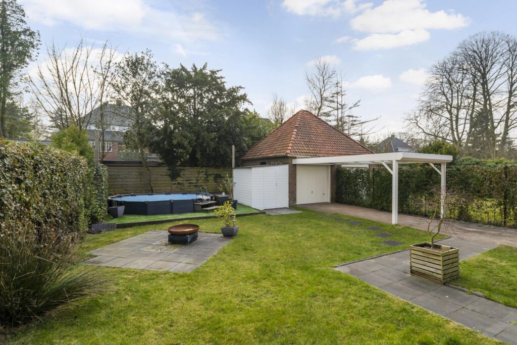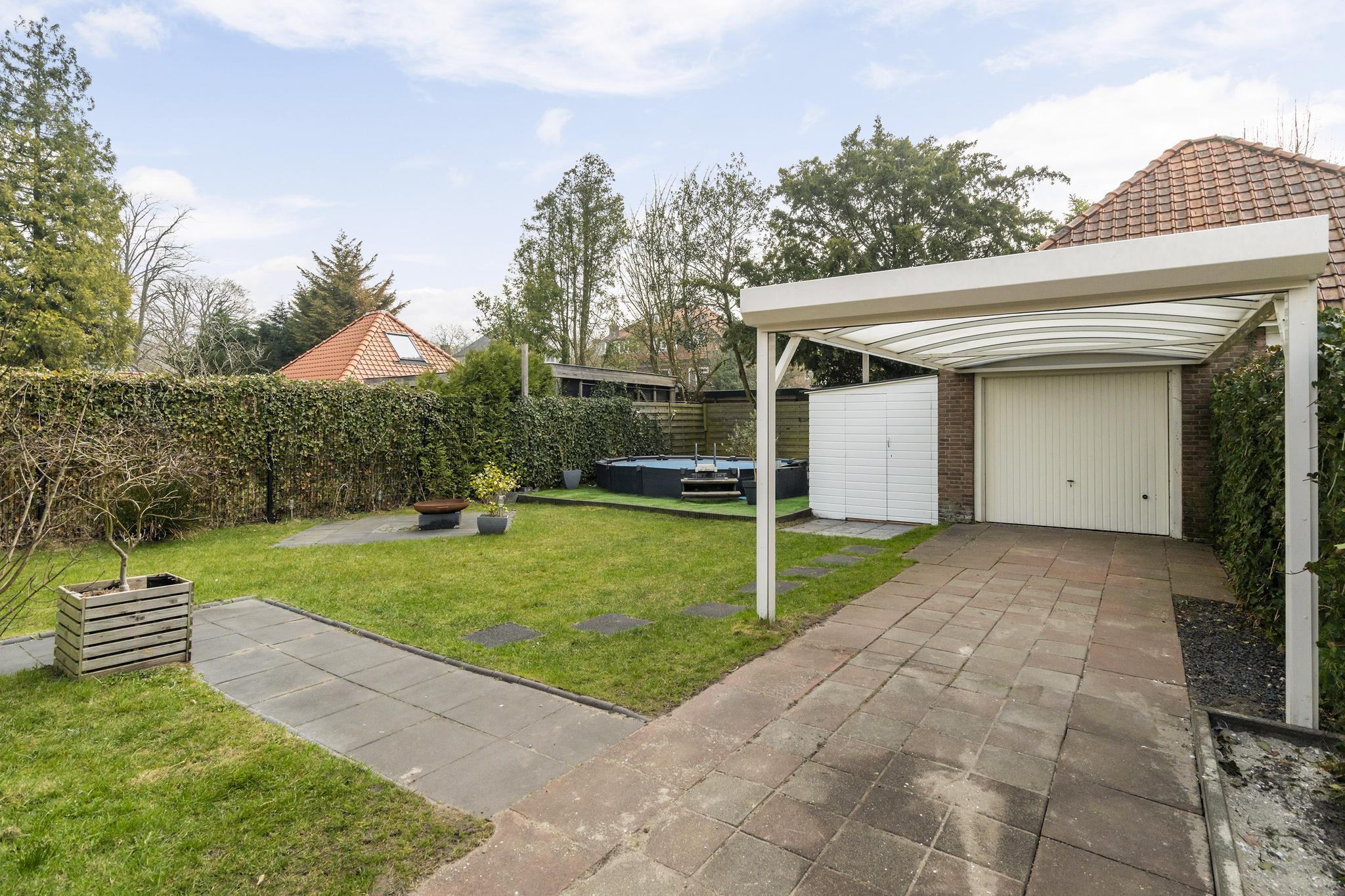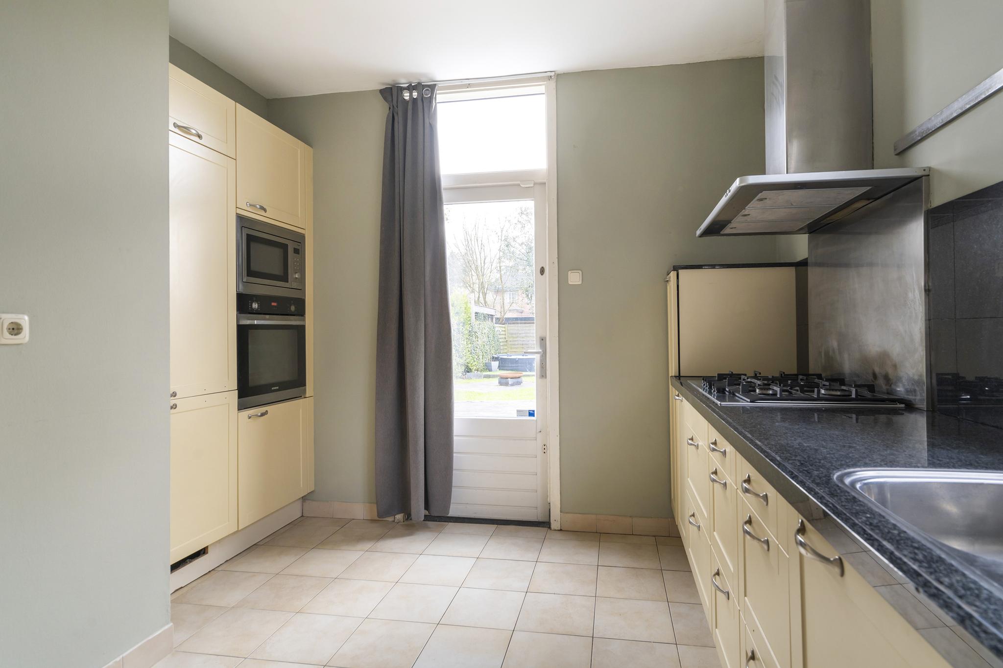 De woning beschikt over een riante woonkamer (L-vormig) met houtgestookte open haard en eetkamer ensuite. Openslaande deuren geven toegang tot de zonnige achtertuin (middag- en avondzon) met berging en garage inclusief carport. De moderne keuken is uitgerust met de benodigde inbouwapparatuur en beschikt tevens tot toegang naar de tuin.